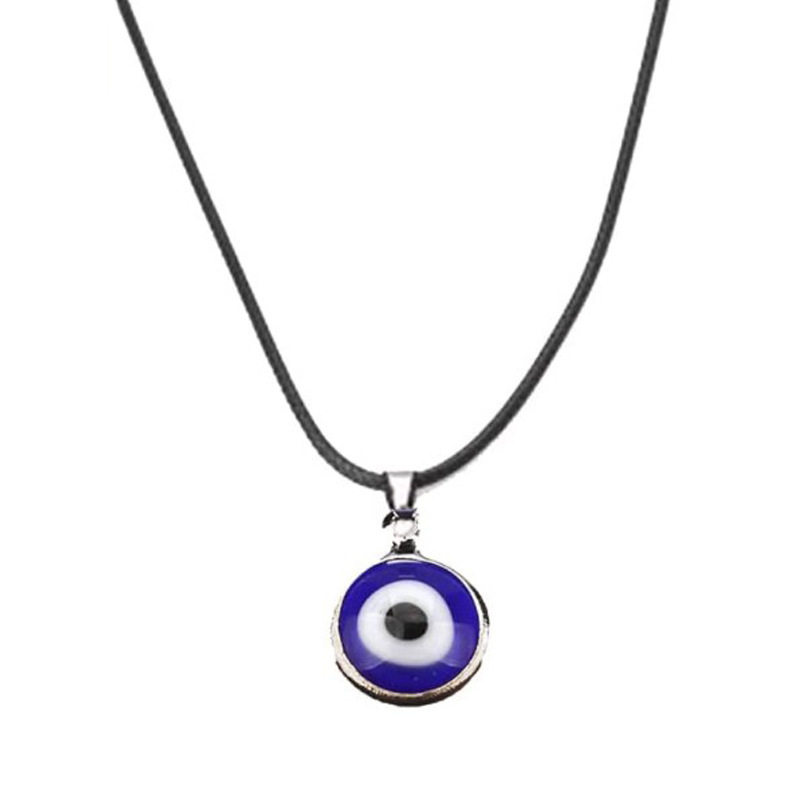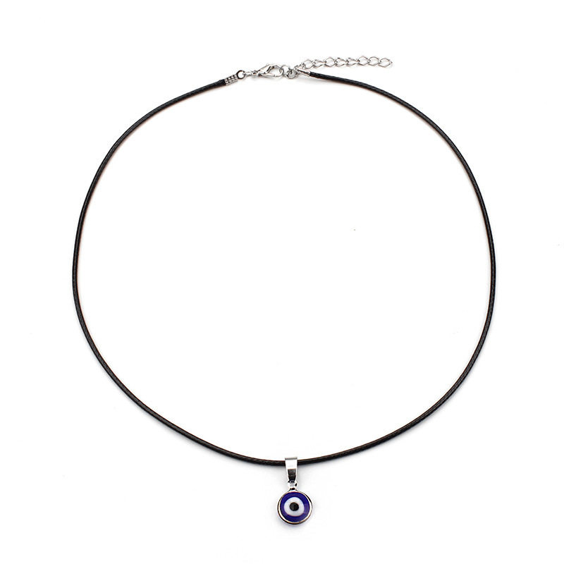 亚马逊热销1cm蓝色恶魔之眼皮绳合金项链 欧美外贸邪恶眼睛吊坠