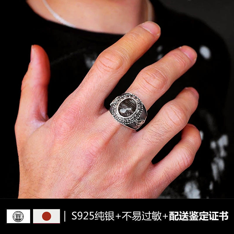 [守护X领袖]复古925纯银黑发晶戒指男士食指霸气欧美复古大指环
