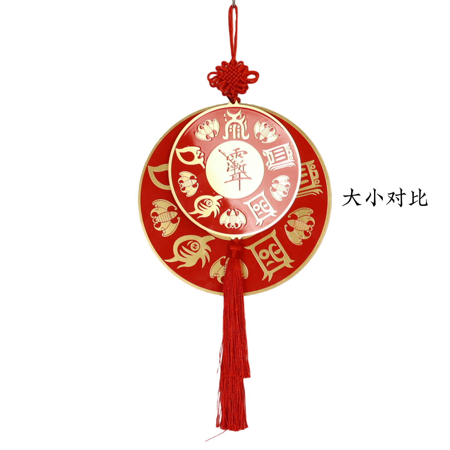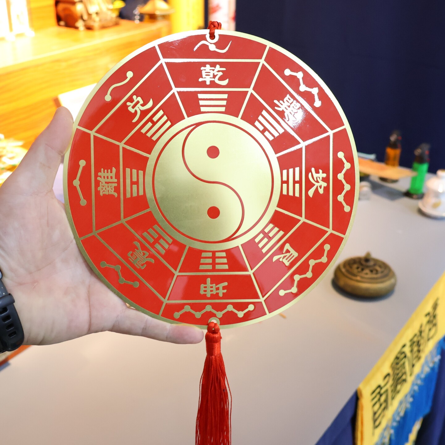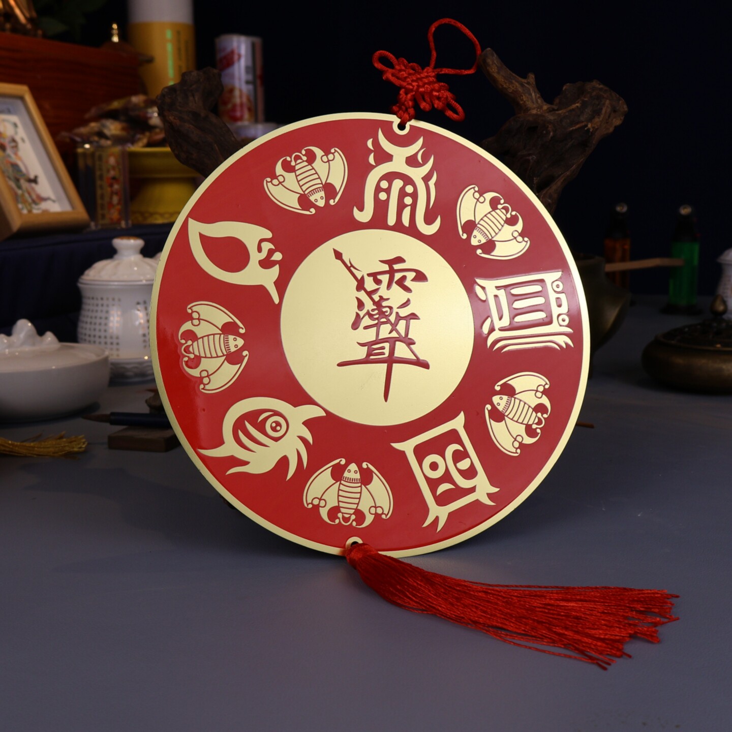 黄铜朱砂底五岳真形图五福临门紫微讳八卦圆牌五蝙蝠挂件家居装饰