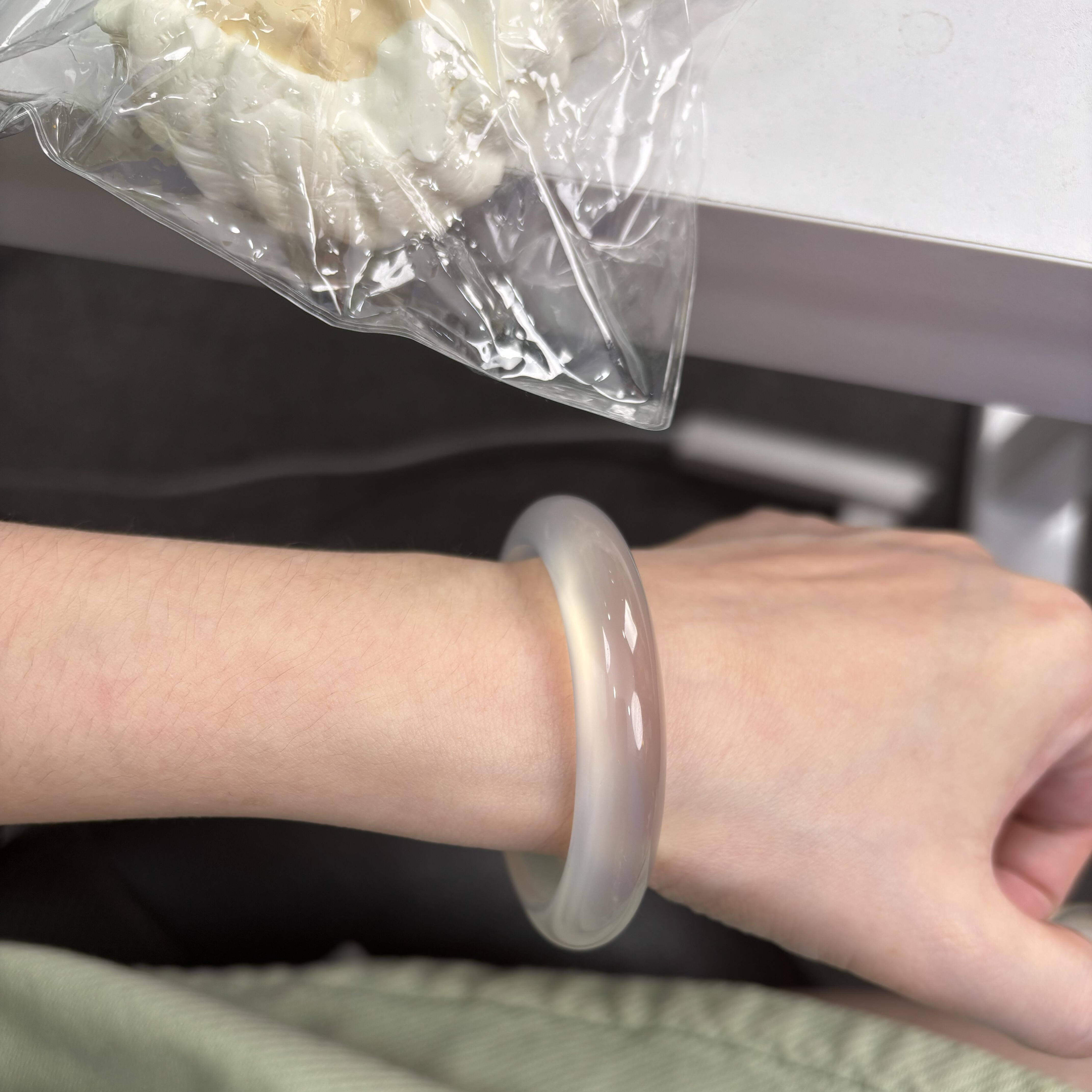精选高冰种白月光玉石手镯上新女款石英岩玉处理翡翠平替扁条玉髓