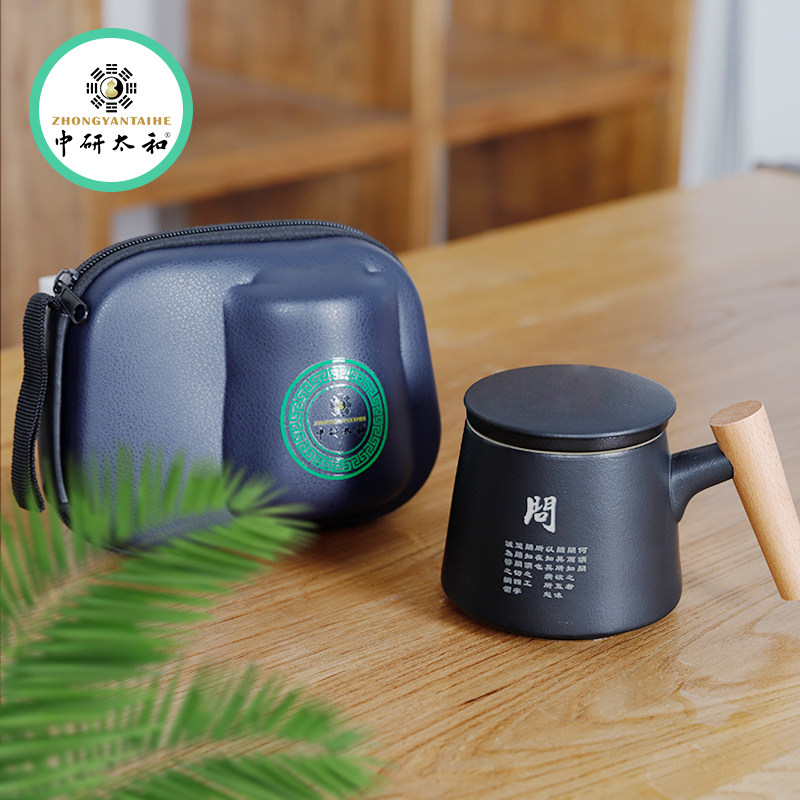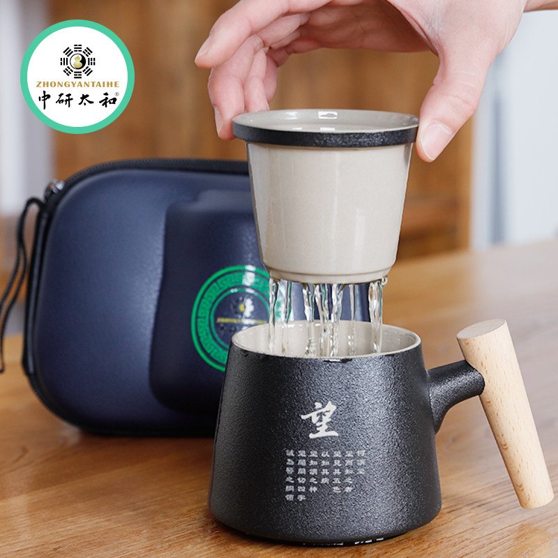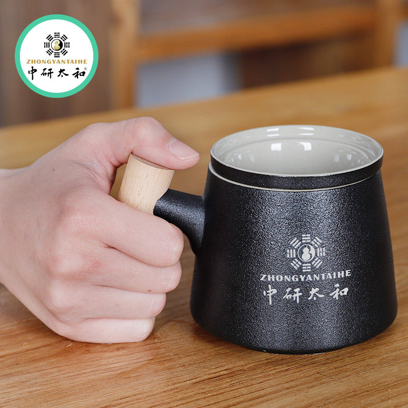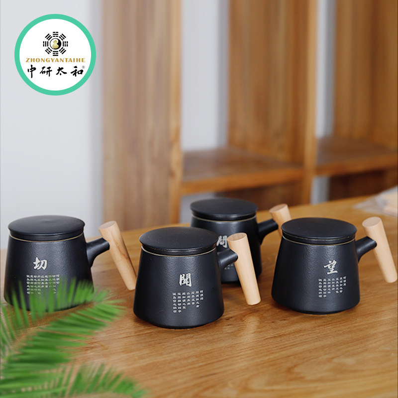 中医文创木柄马克杯带盖过滤泡茶杯望闻问切陶瓷杯茶水分离杯送礼