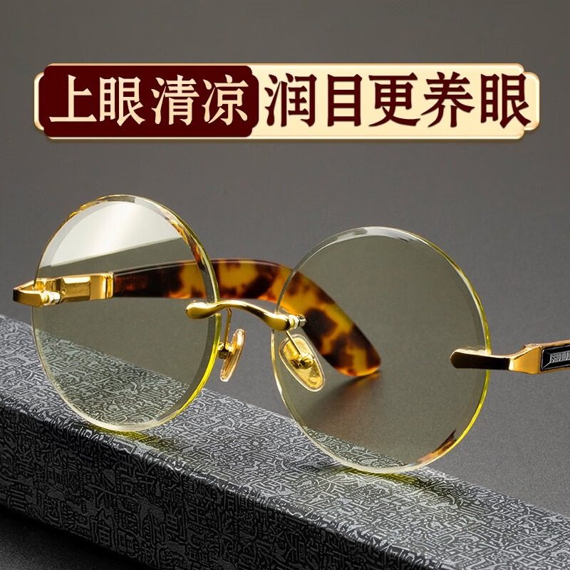 天然竹叶青水晶眼镜 复古圆镜太阳镜 高清高档石头镜 清凉润目