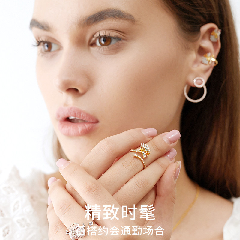 GTM月伴小雏菊戒指女S925纯银精致重工轻奢高级感开口戒小众设计