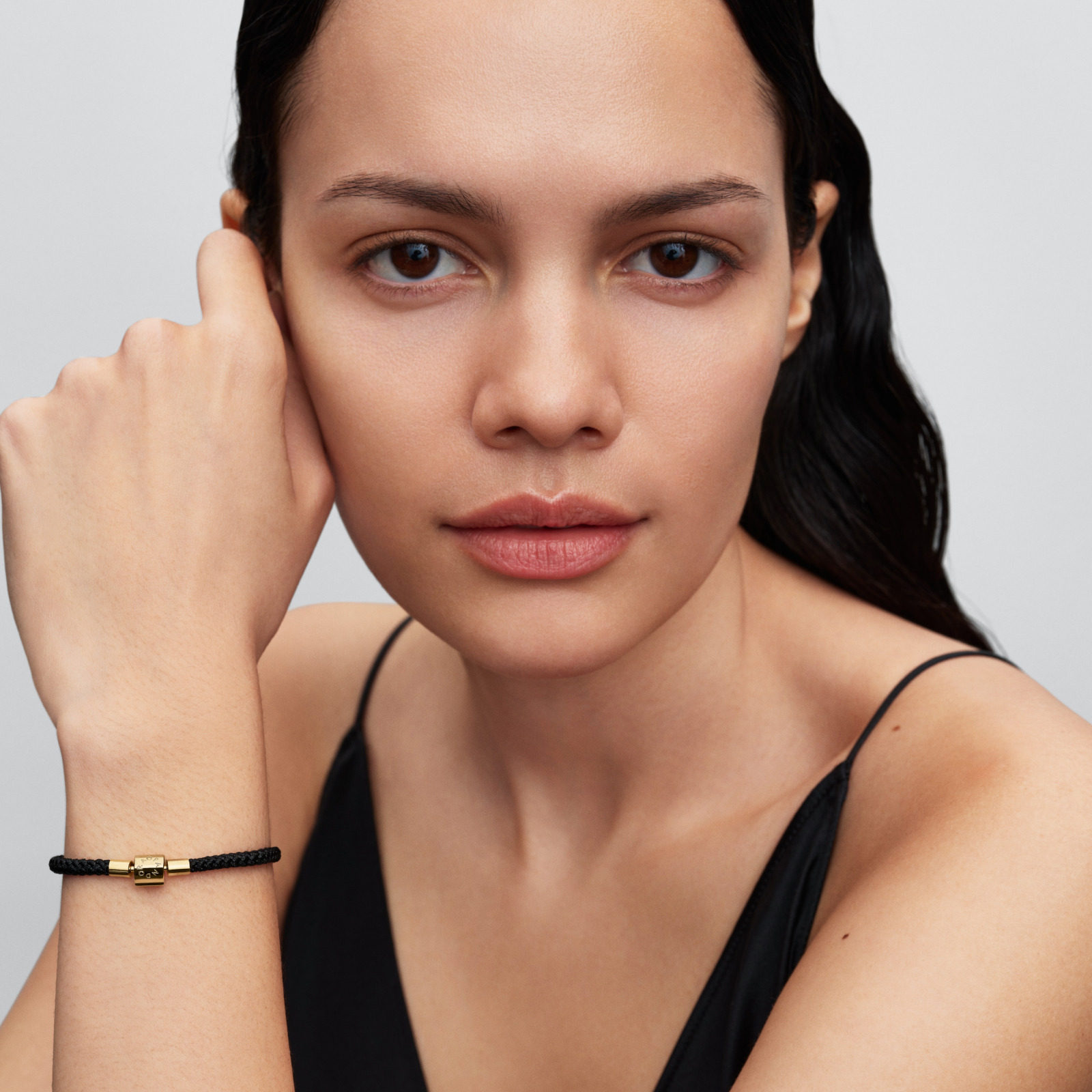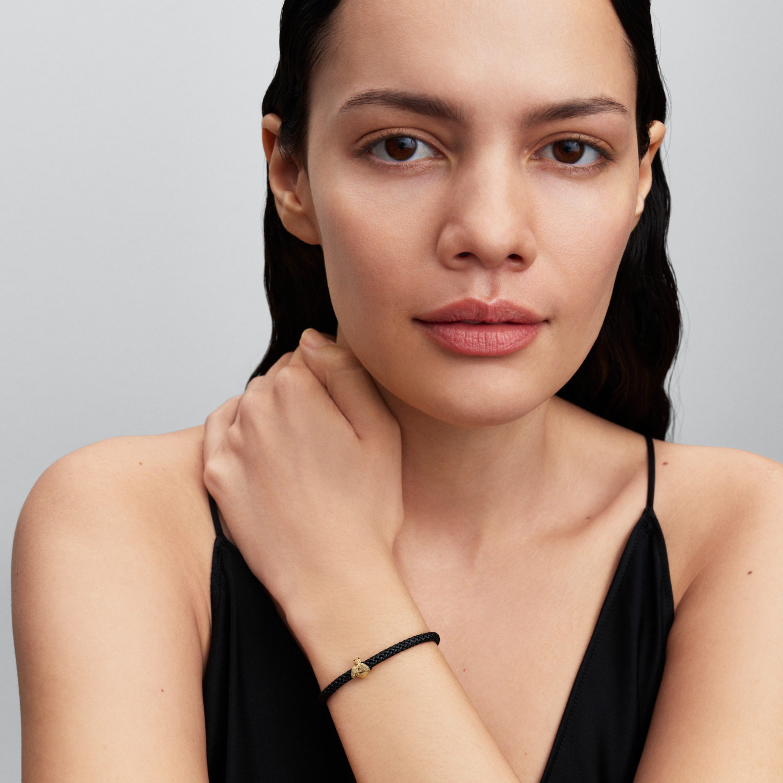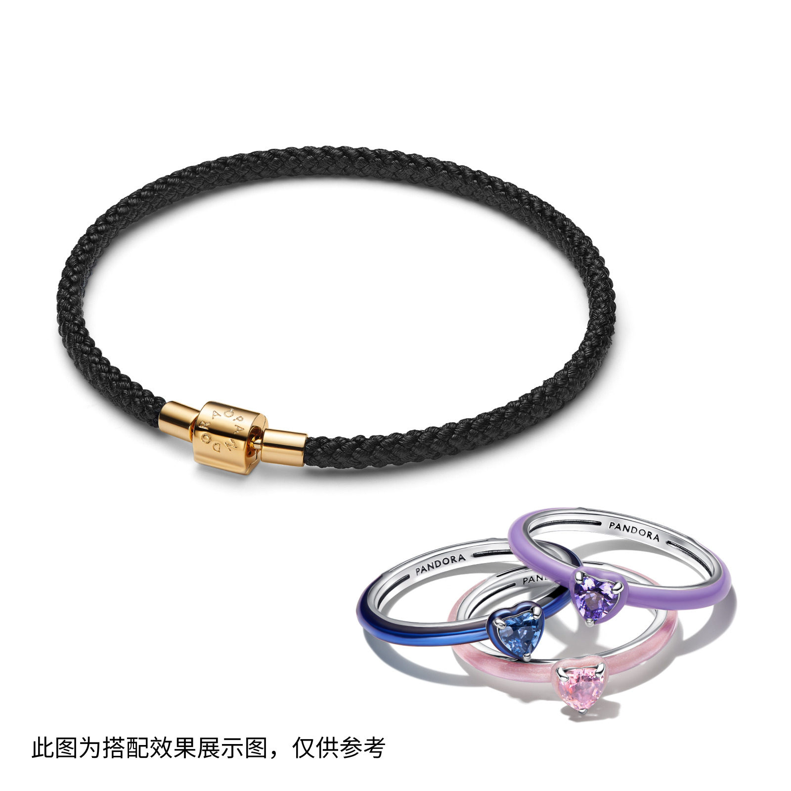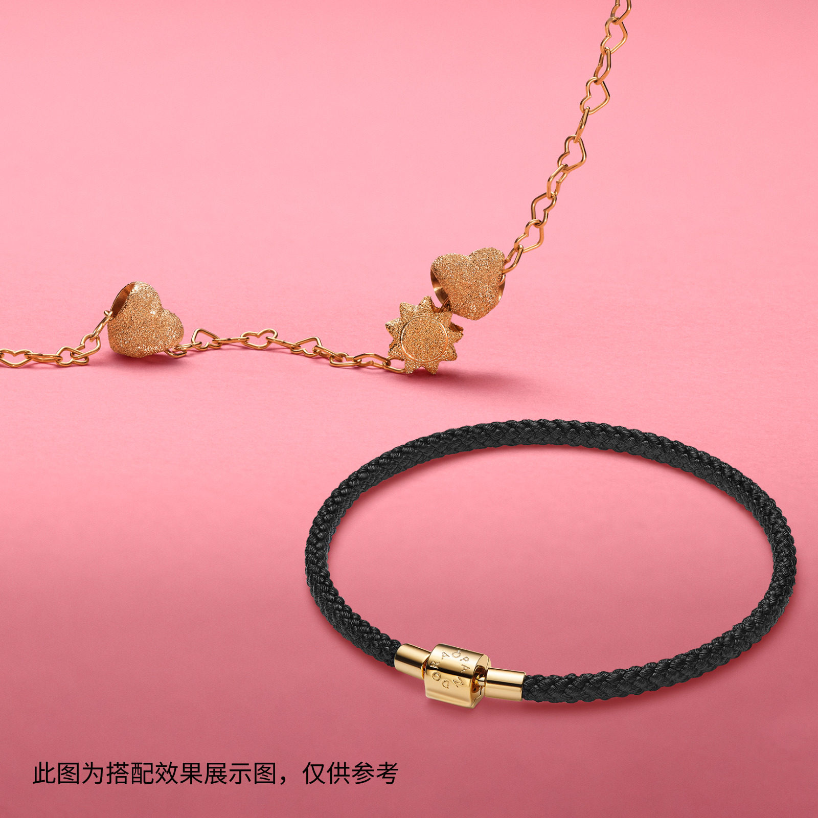 Pandora潘多拉珠光黑色编绳手链金属锁扣现代时尚礼物