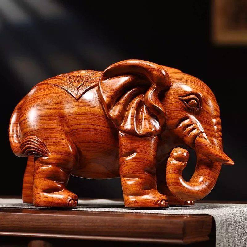 黑檀木雕大象摆件实木质雕刻一对象红木家居玄关办公室装饰工艺品