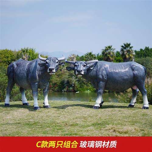 室外草坪仿真大水牛摆件黄牛模型装饰农耕文化玻璃钢牧童骑牛雕塑
