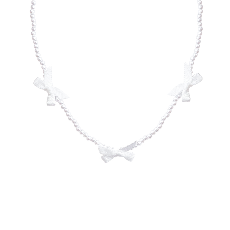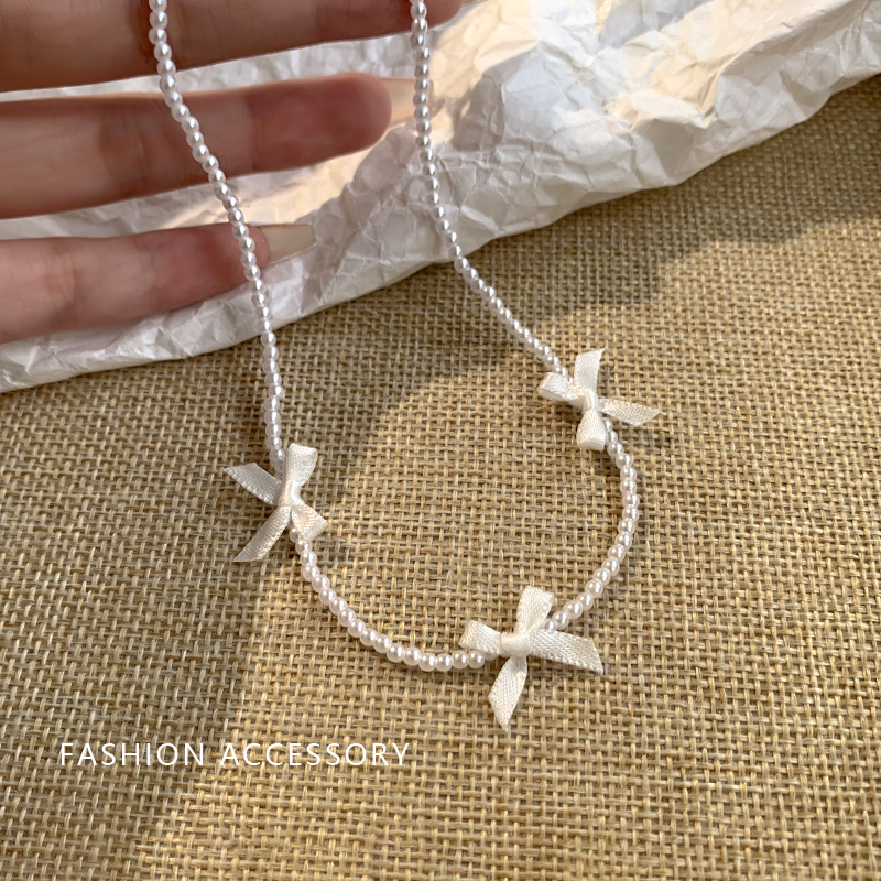 法式温柔蝴蝶结珠珠项链女2024新款爆款锁骨链高级感轻奢小众颈链