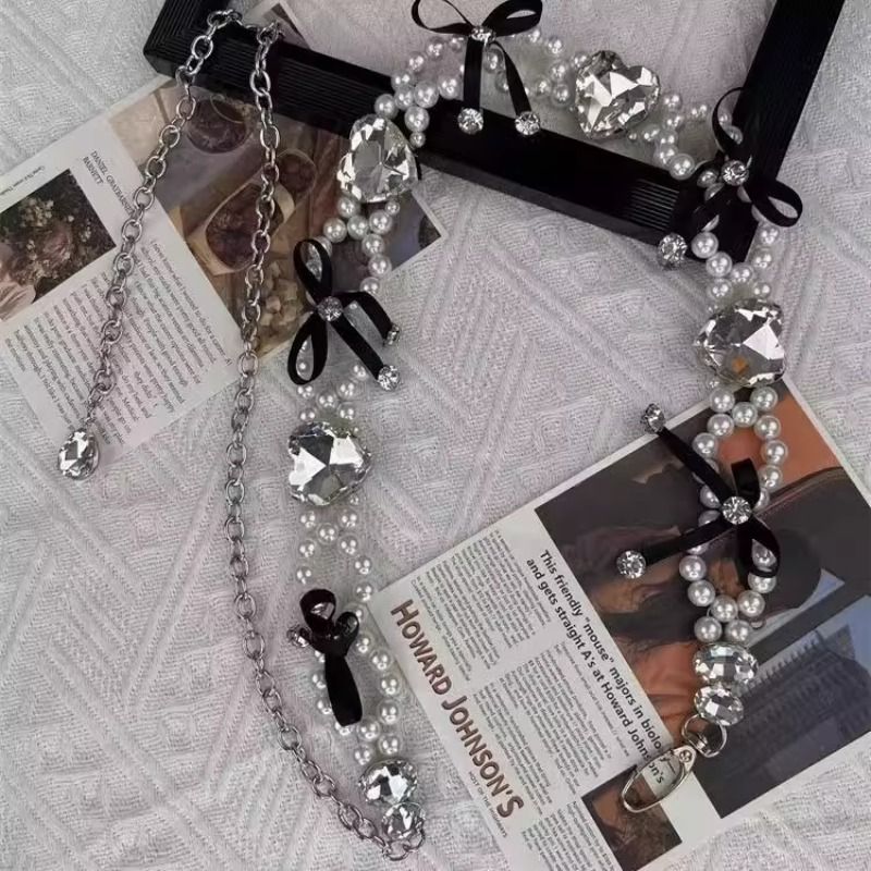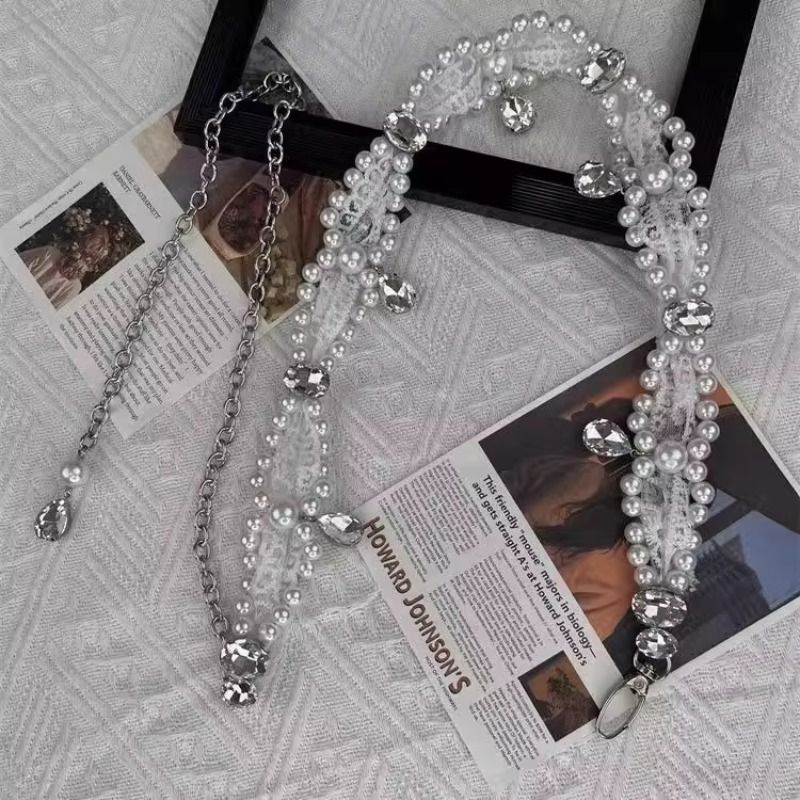 优雅甜美镶钻珍珠腰带女装饰配裙子毛衣丝巾爱心腰链配饰2025新款