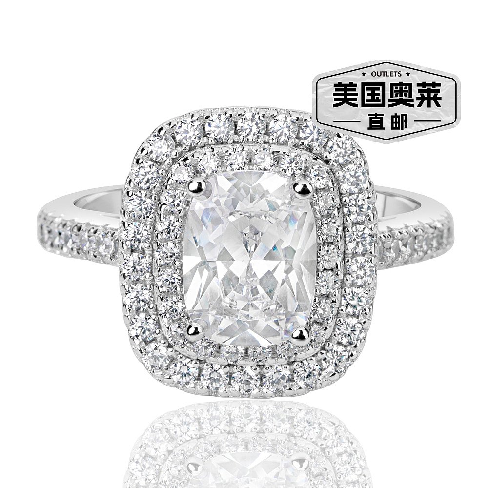 自营 Suzy Levian 纯银枕形切割白色立方氧化锆双光环新娘戒指 -