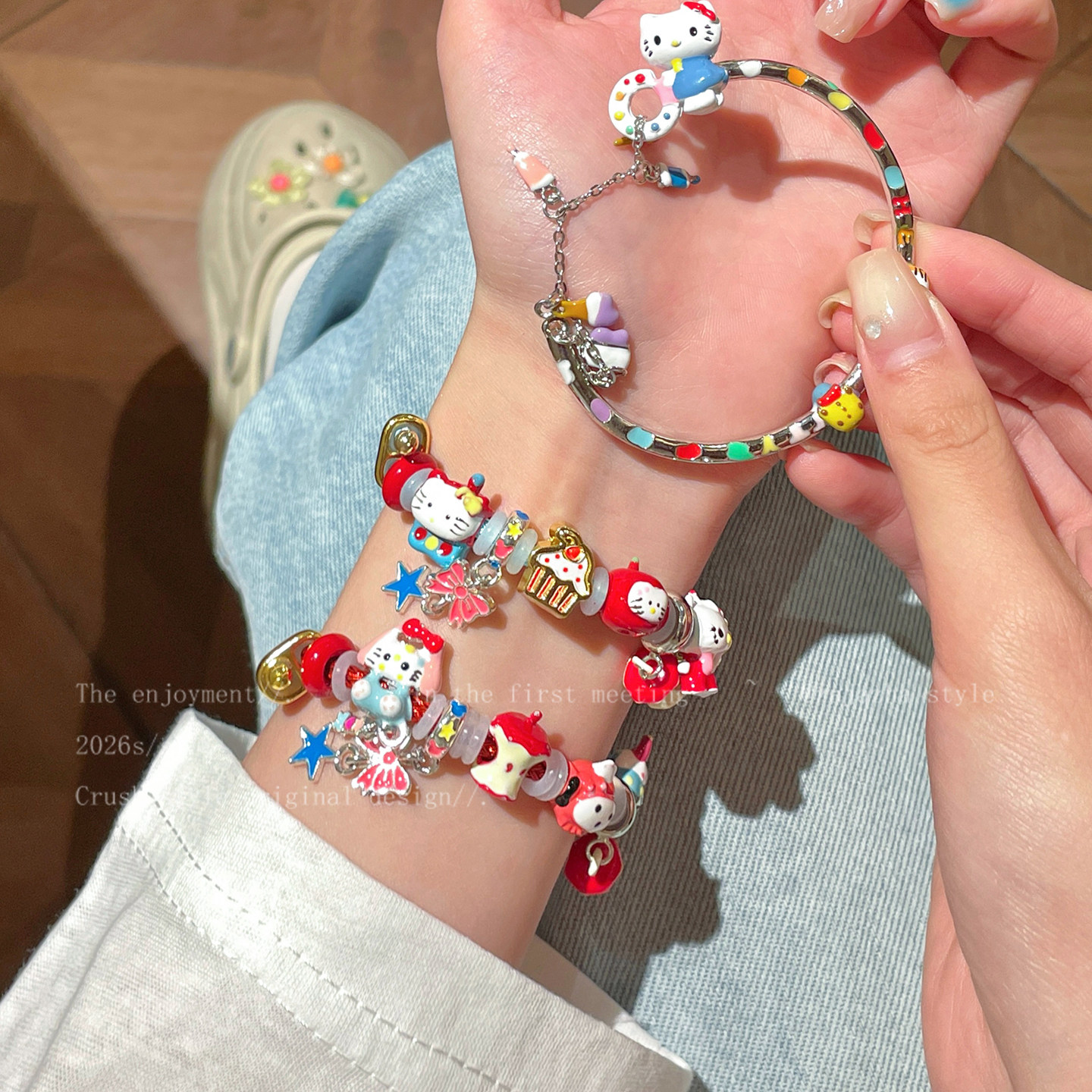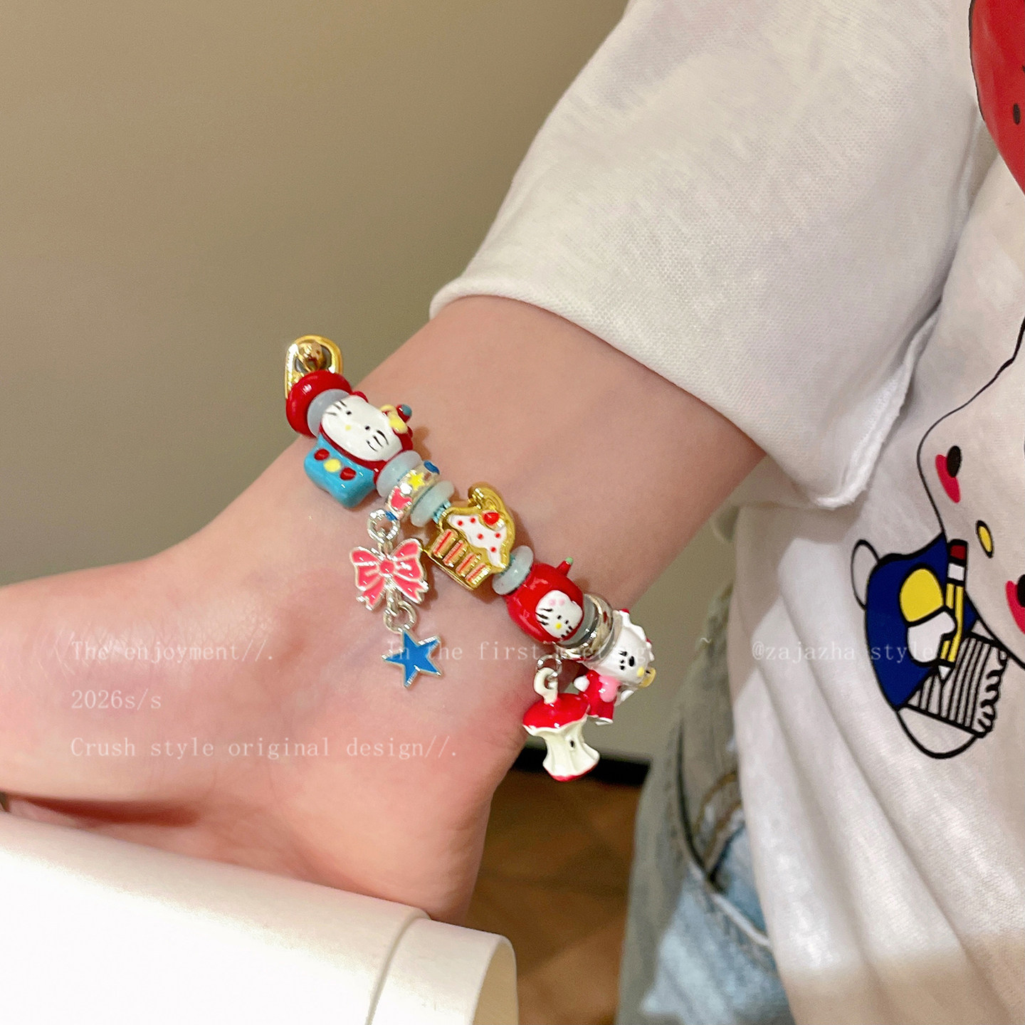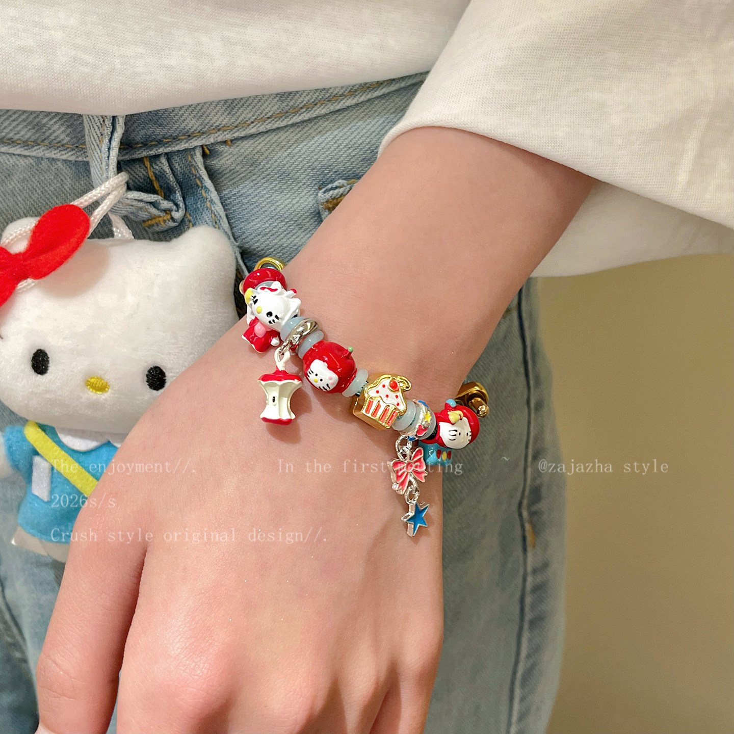 多巴胺苹果KT猫编织手链女可爱小众设计闺蜜手串高颜值学生党手饰