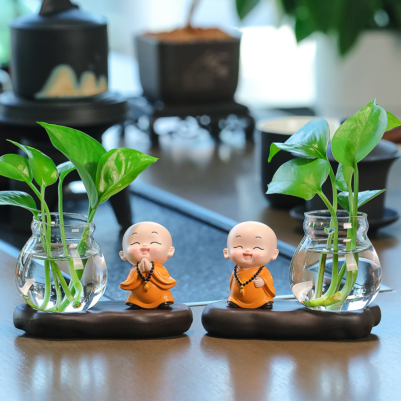 禅意小和尚绿萝植物水培花瓶办公桌桌面摆件家居茶桌插皿水养花器
