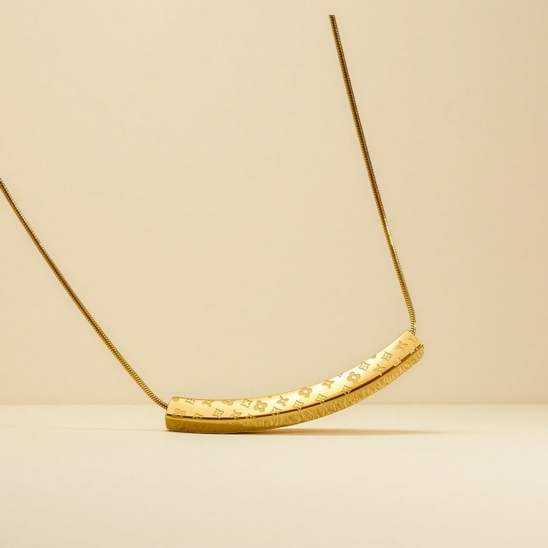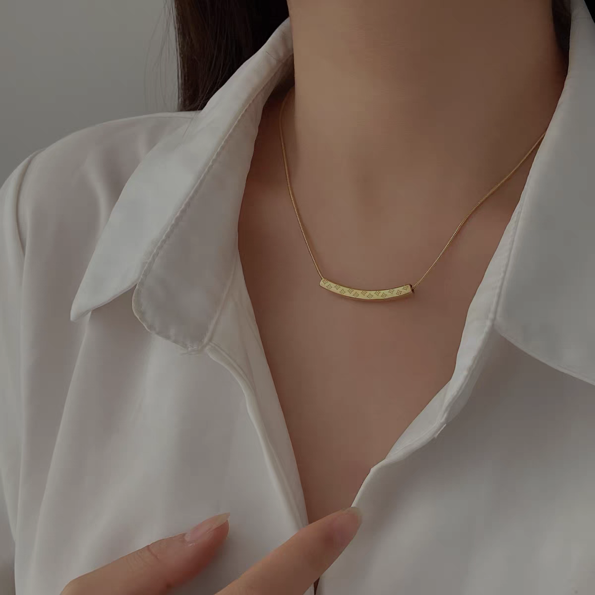 高级感老花纹弯管项链锁骨链轻奢气质时尚百搭INS风简约钛钢饰品