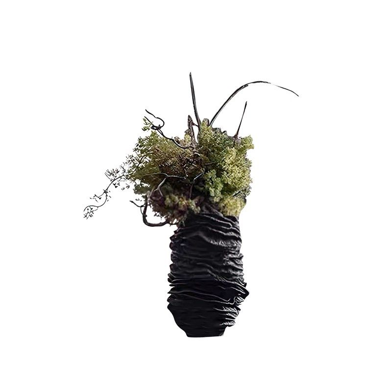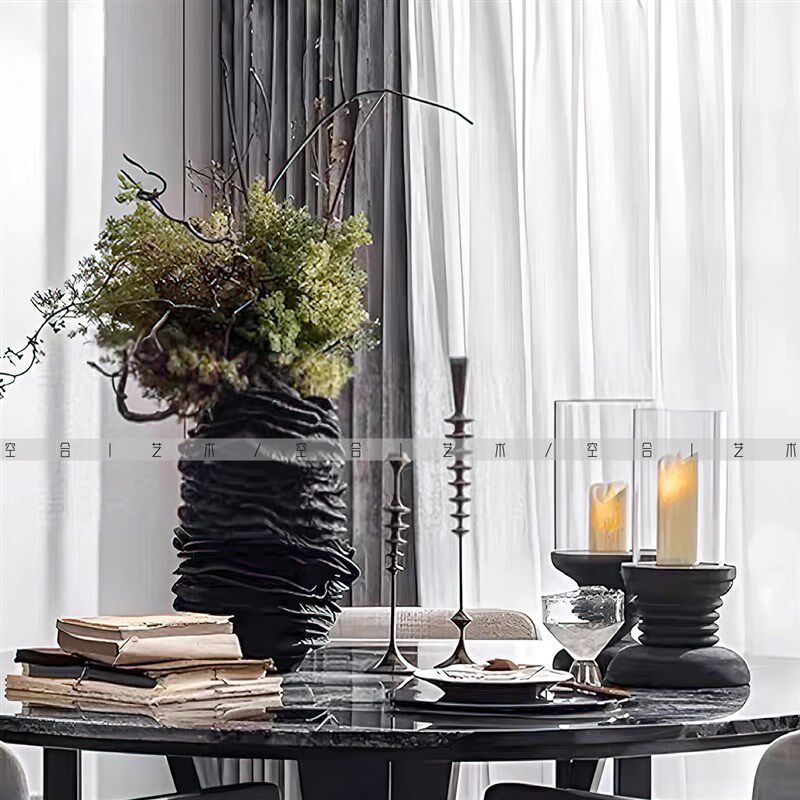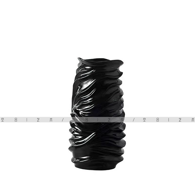 空合 现b代极简黑色曲线花器花艺 样板间样品屋展示中心酒店家居