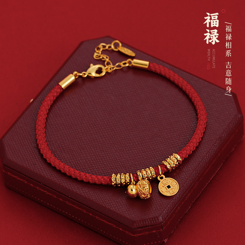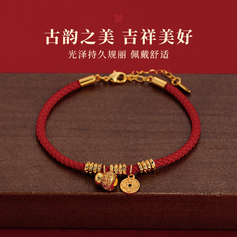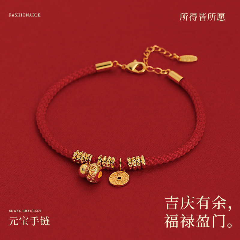 本命年金色葫芦钱币串珠红绳手链女2026新款手饰轻奢小众精致手绳