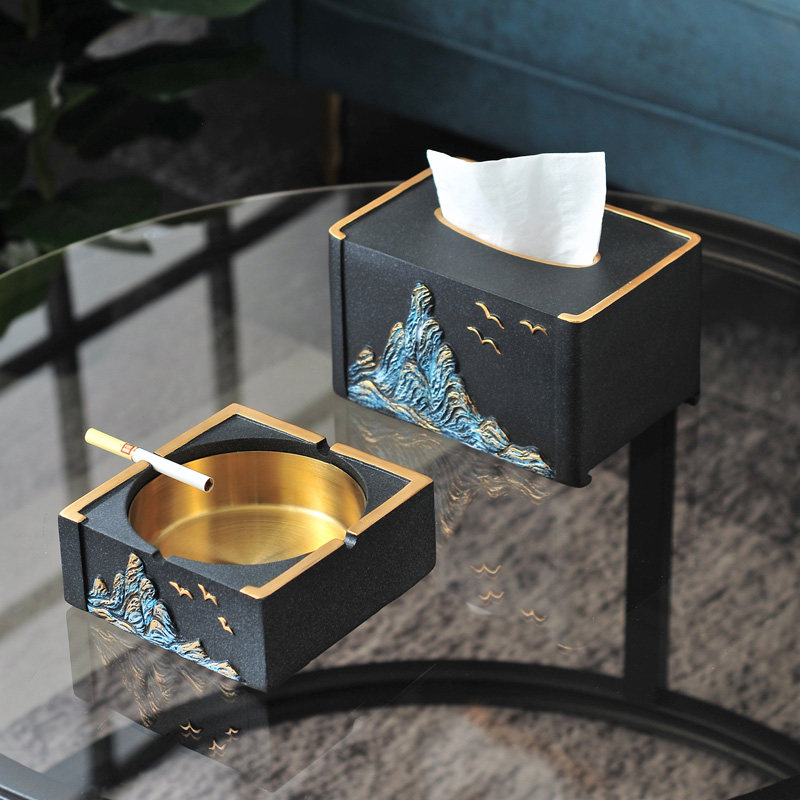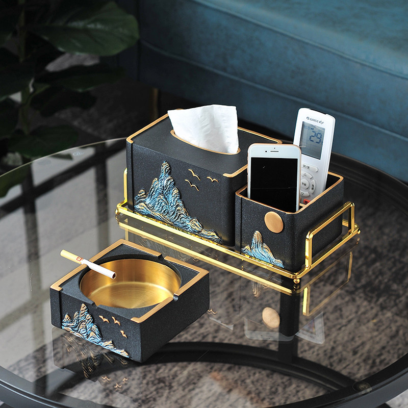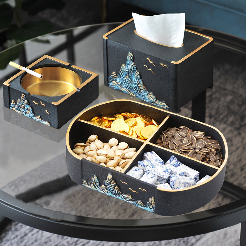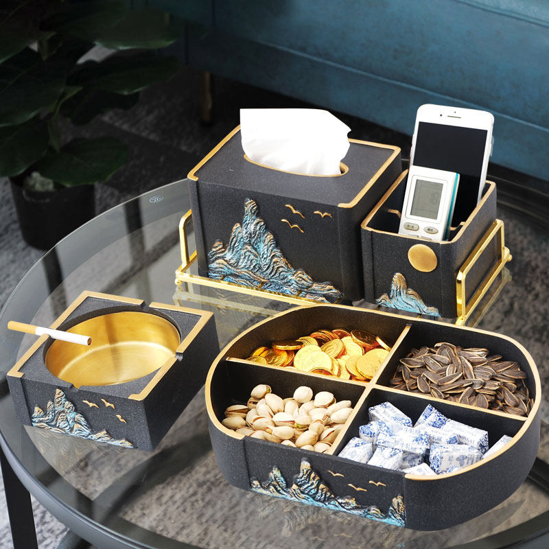 极速新中式客厅家用茶几烟灰缸纸巾E盒收纳组合套装样板房软装桌
