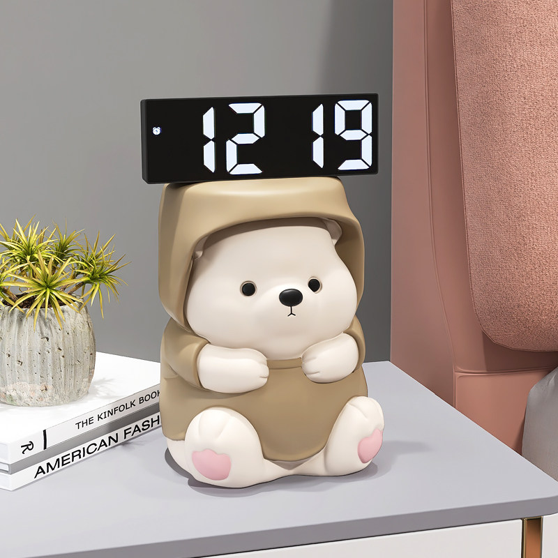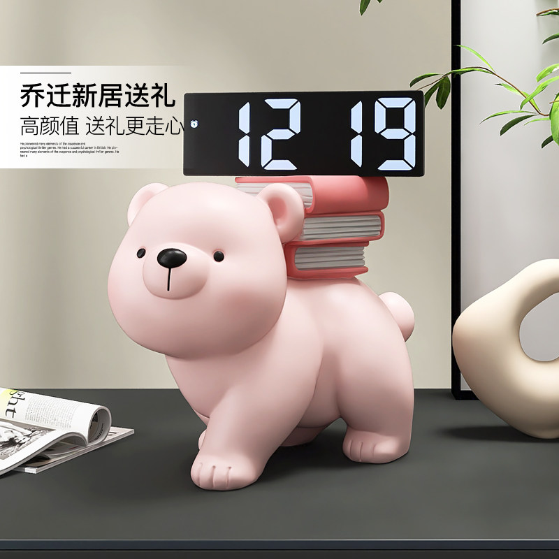 轻奢熊摆件客厅卧室床头柜家居装饰品简约电子时钟送女生桌面摆设