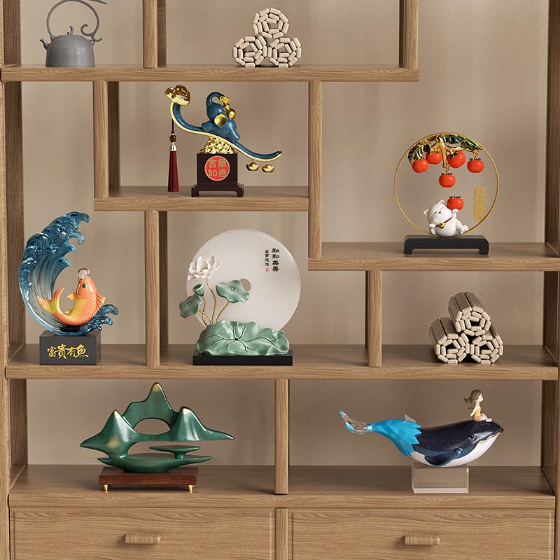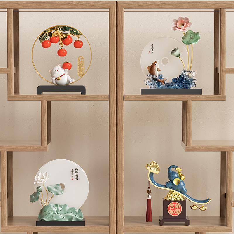 新中式客厅摆件软装高端大气上档次展示柜办公室茶室博古架装饰品