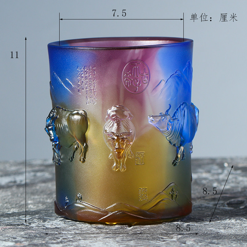 琉璃笔筒五牛图教师m节生肖摆件桌面工艺礼品生日礼物中式工艺品