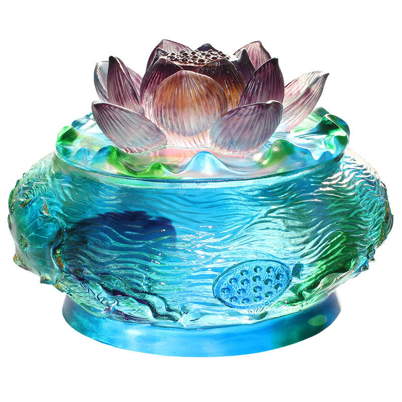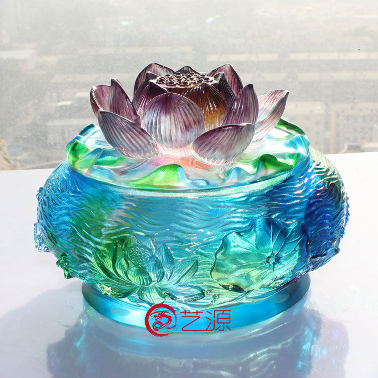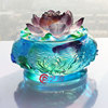 琉璃莲花香炉蓝绿色储物盒香插香薰佛堂佛具创意家居装饰品摆件