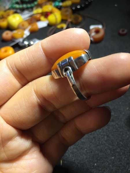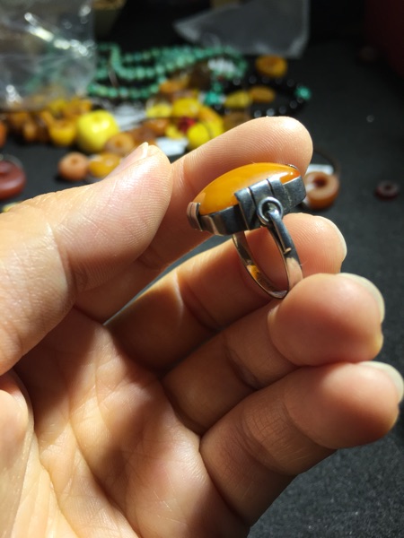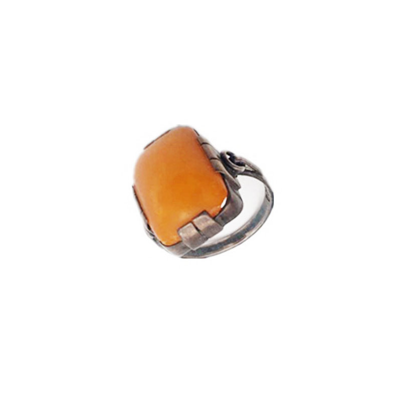 欧洲回流古董戒指纯银镶800银天然老蜜蜡戒面满蜜鸡油黄复古简约