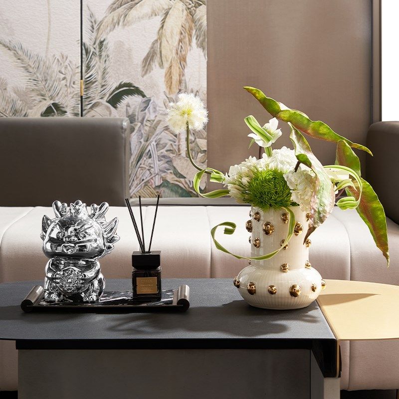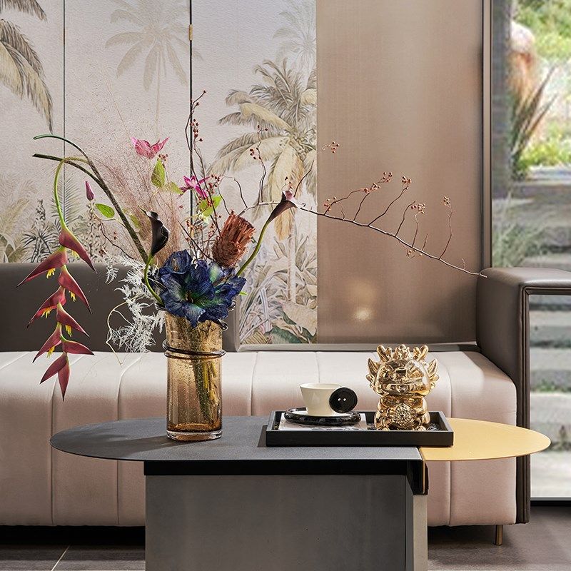邸高家居办公室装修设计布置老板办公桌背景展示柜摆件装饰品陈列