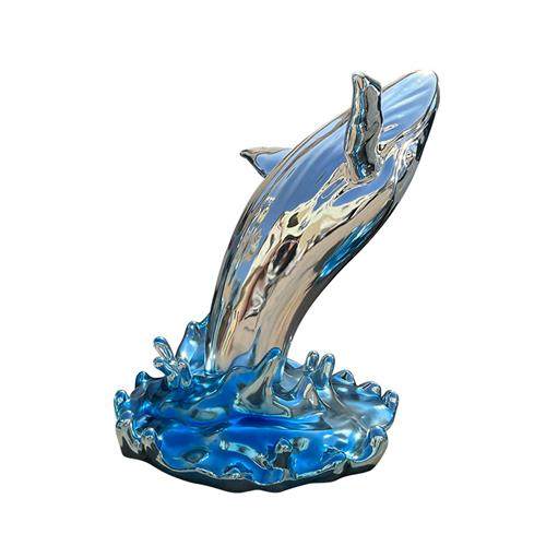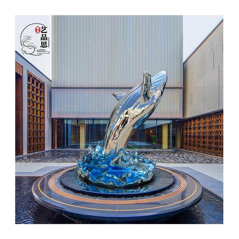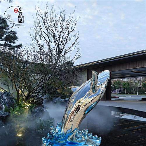 玻璃钢鲸鱼浪花雕塑不锈钢定制创意水景酒店门厅海洋动物摆件装饰