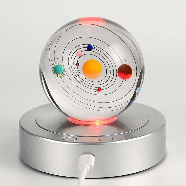 新款LED水晶旋转灯座七彩白光灯光旋转多模式多功能USB展示底座
