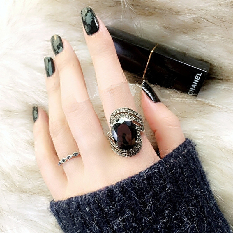 日韩潮人个性夸张红宝石戒指女大码关节戒韩版学生套装复古食指环