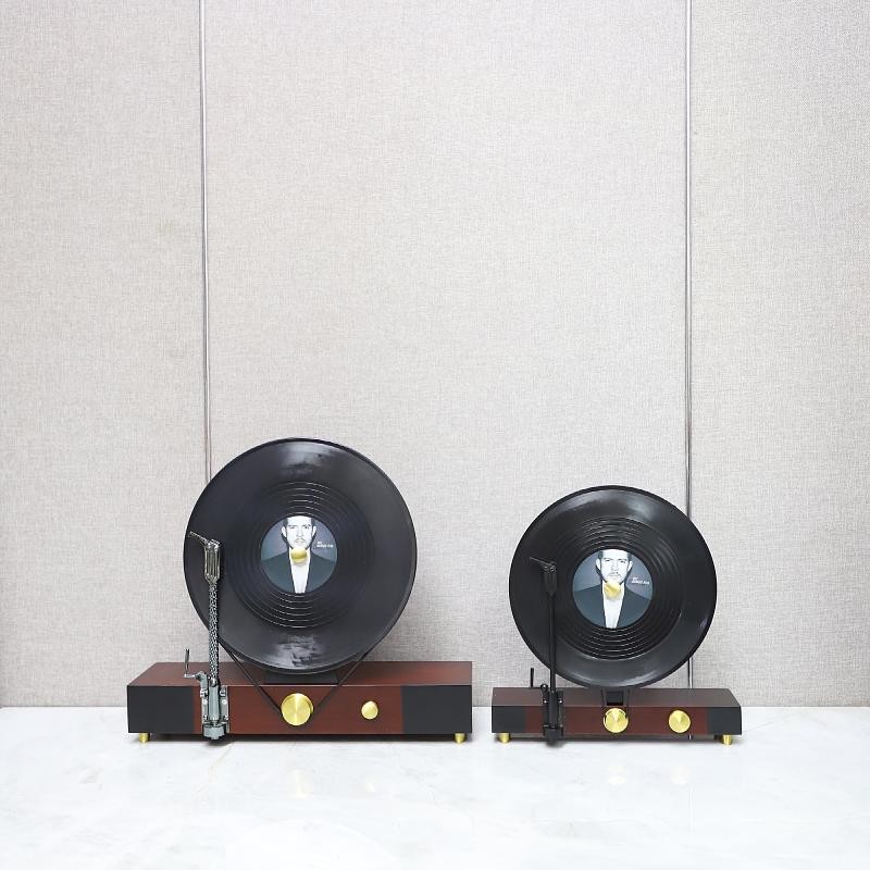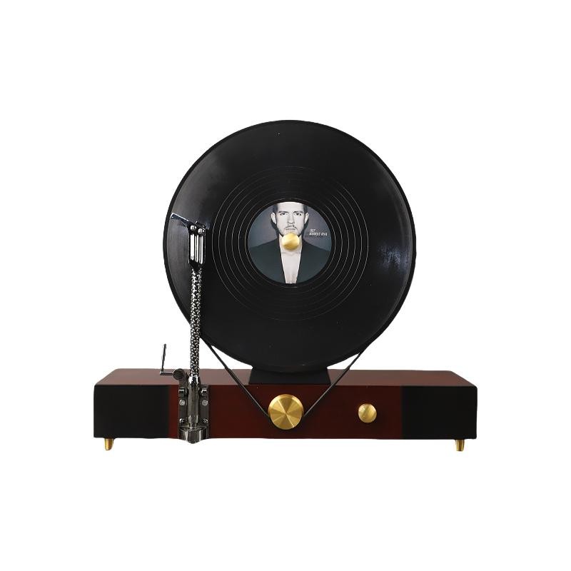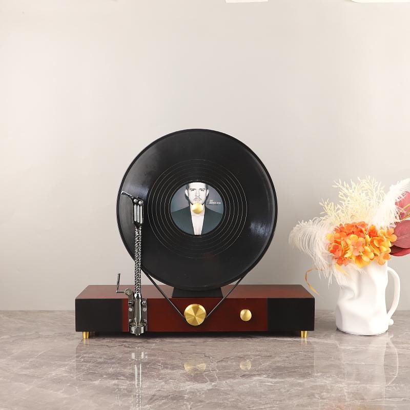 轻奢木质复古黑胶唱片机摆件样板间酒店家居电视柜书房桌面装饰品