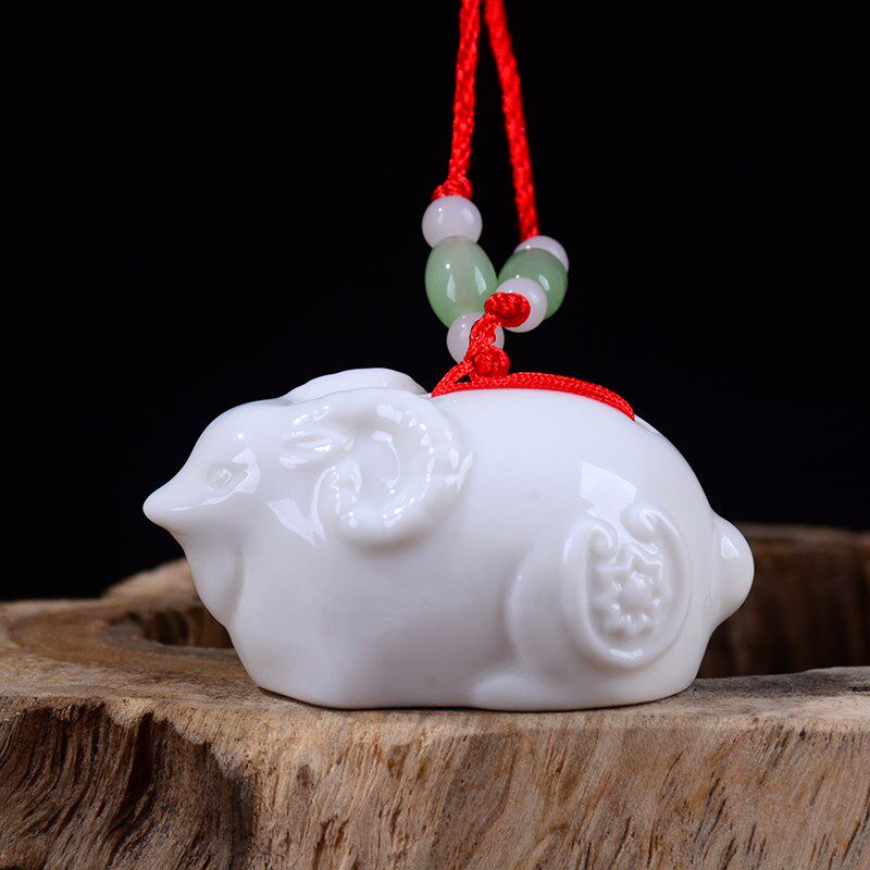 车内创意工艺品狗陶瓷器白色鼠A羊猪装饰品挂件儿童羊十二生肖摆