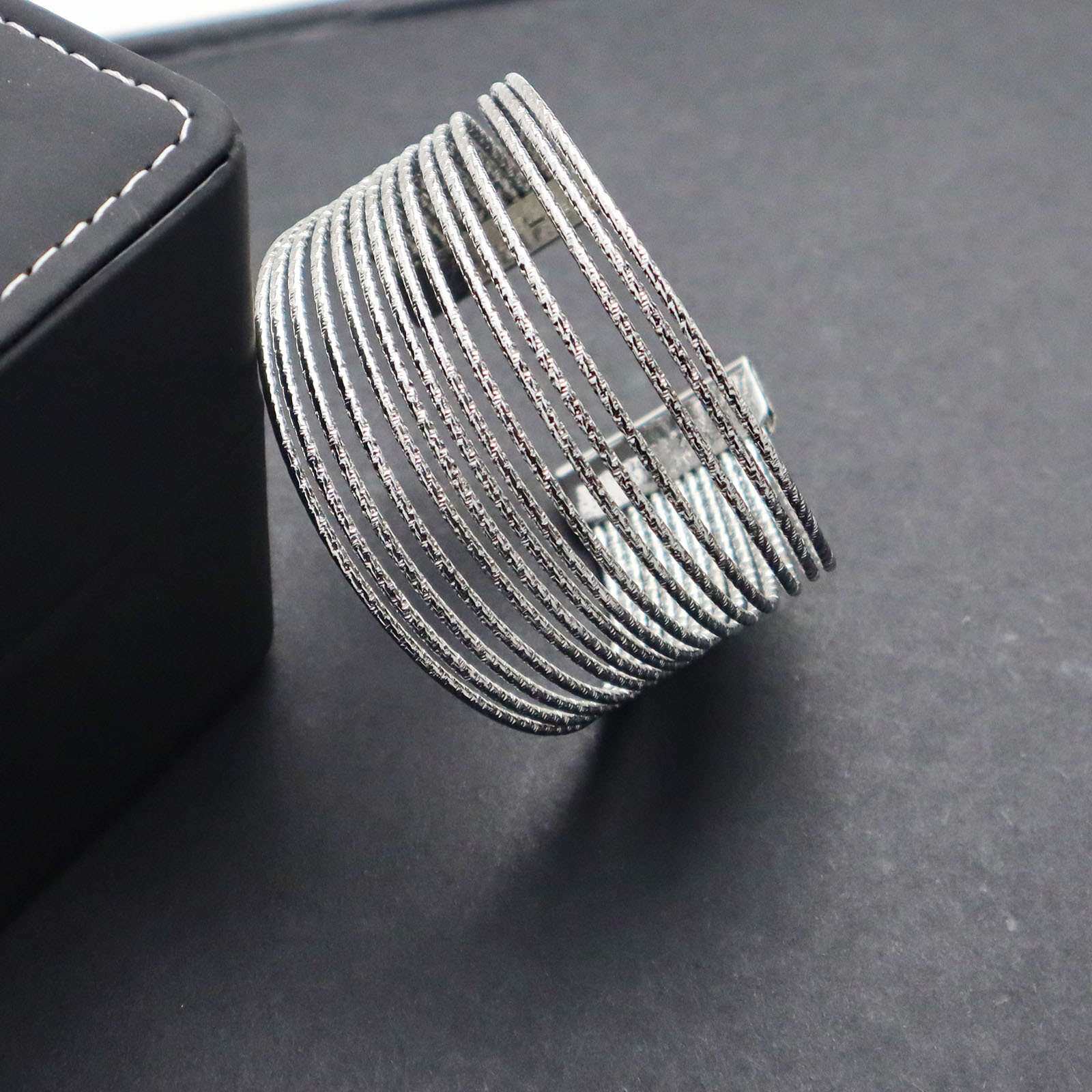 欧美个性夸张多层线圈手镯金属满天星纹多线条手环环保无铅镍手饰