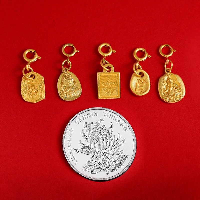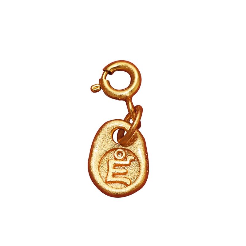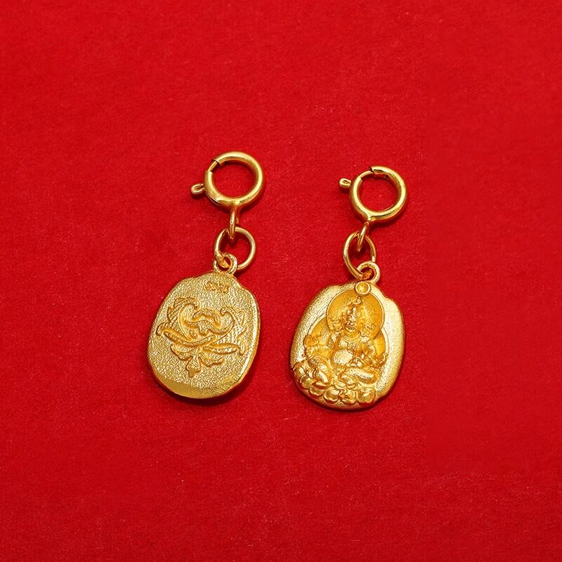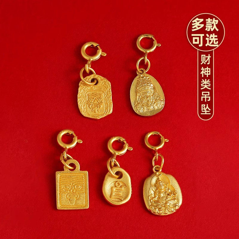 S925纯银镀金扎基拉姆吊坠财神文玩卡子手串配饰种子字黄财神吊坠