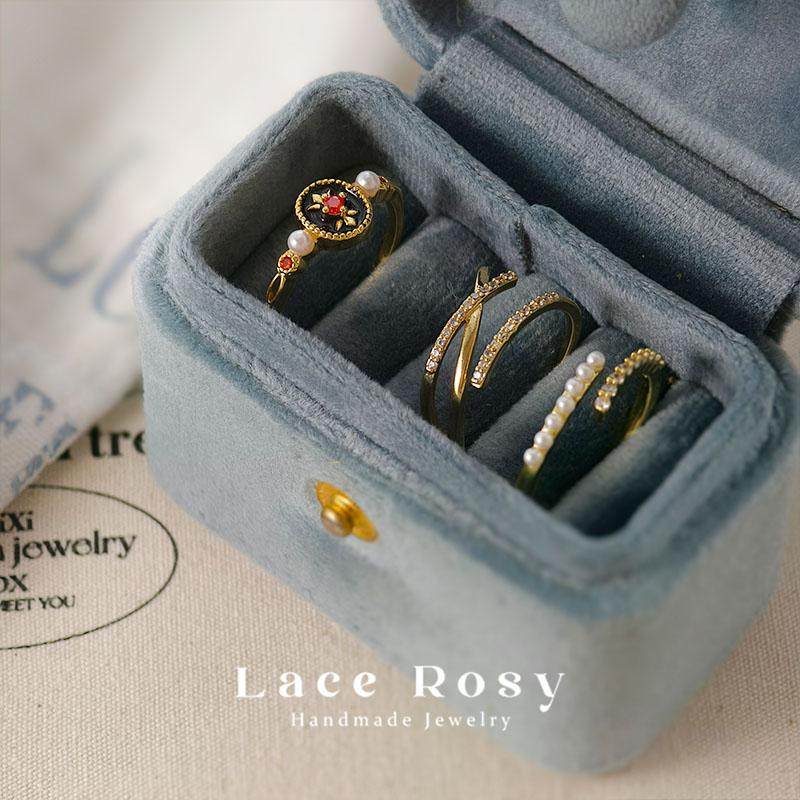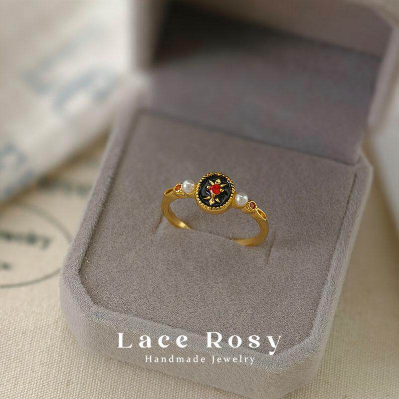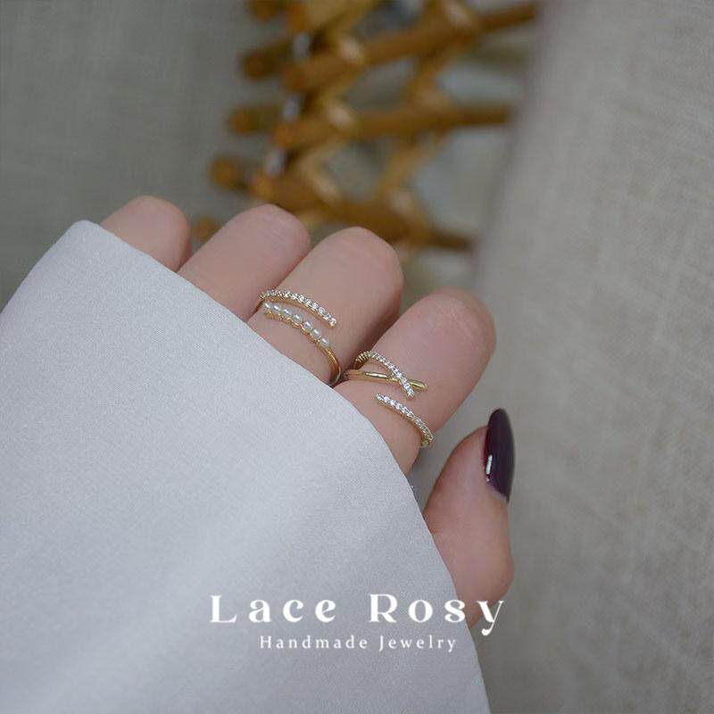 (特价处理)法式复古开口戒指锆石黑色珍珠碎钻气质简约通勤饰品