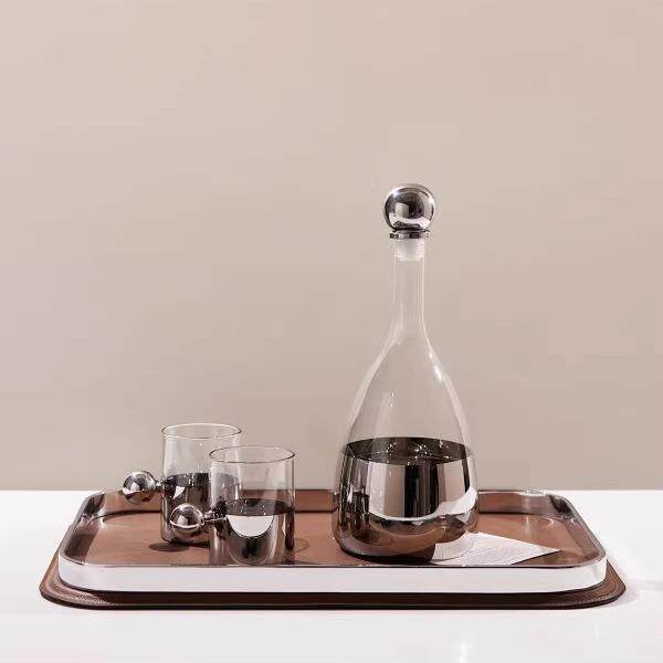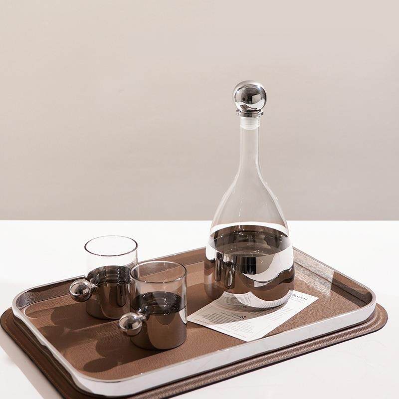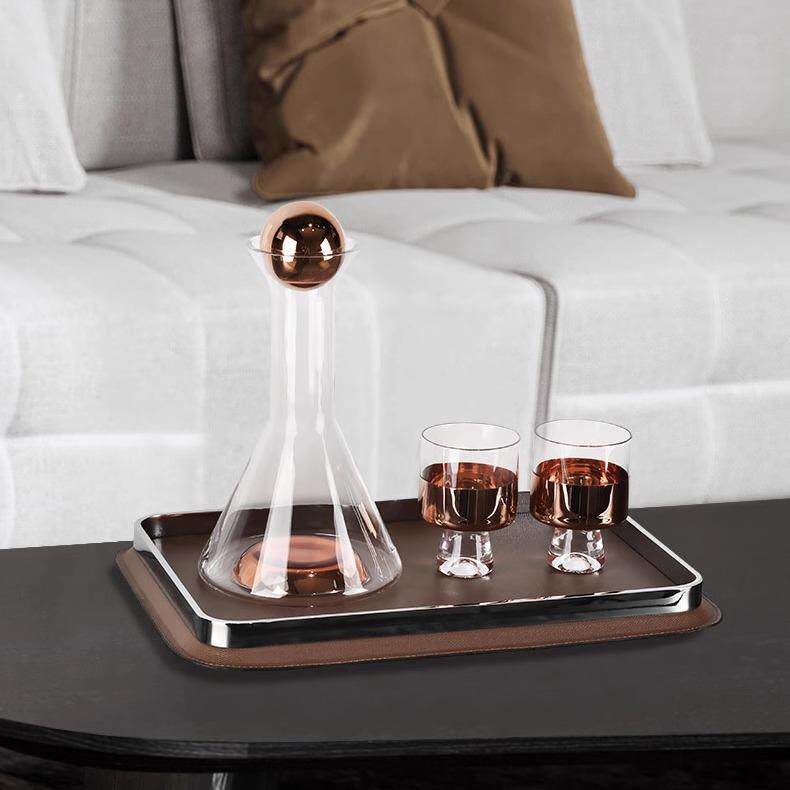 简约现代长方形金属围边皮托盘摆件售楼处样板间客厅桌面软装饰品