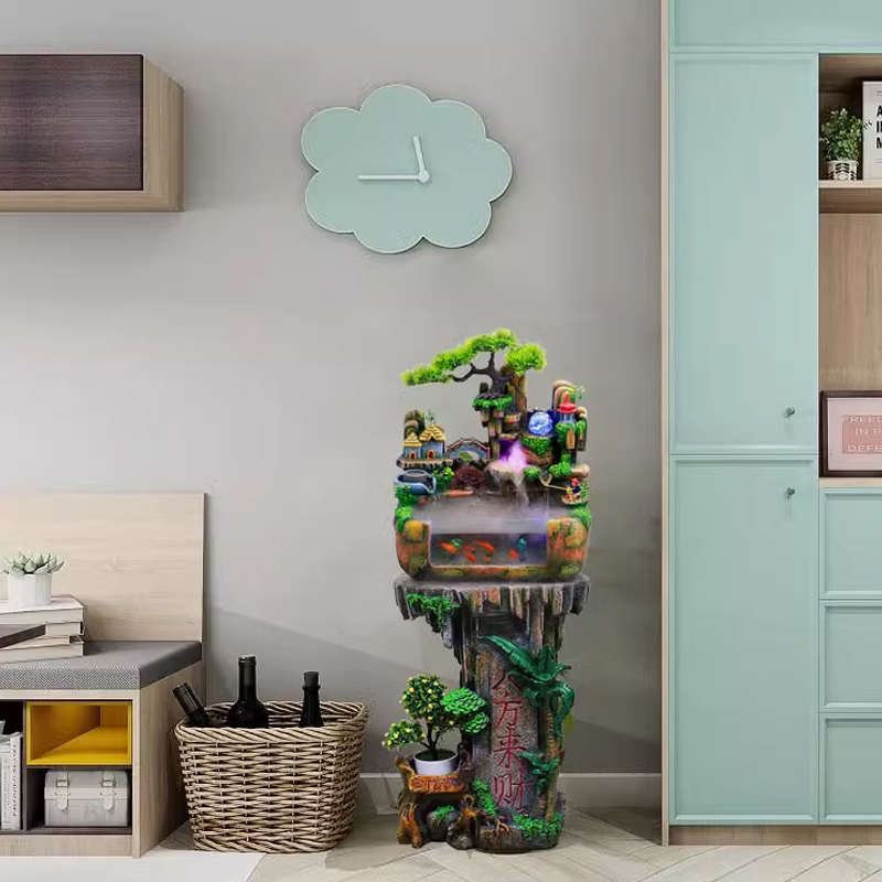 客厅假山流水喷泉循环水小高山小型瀑布山水鱼缸水景装饰造景摆件
