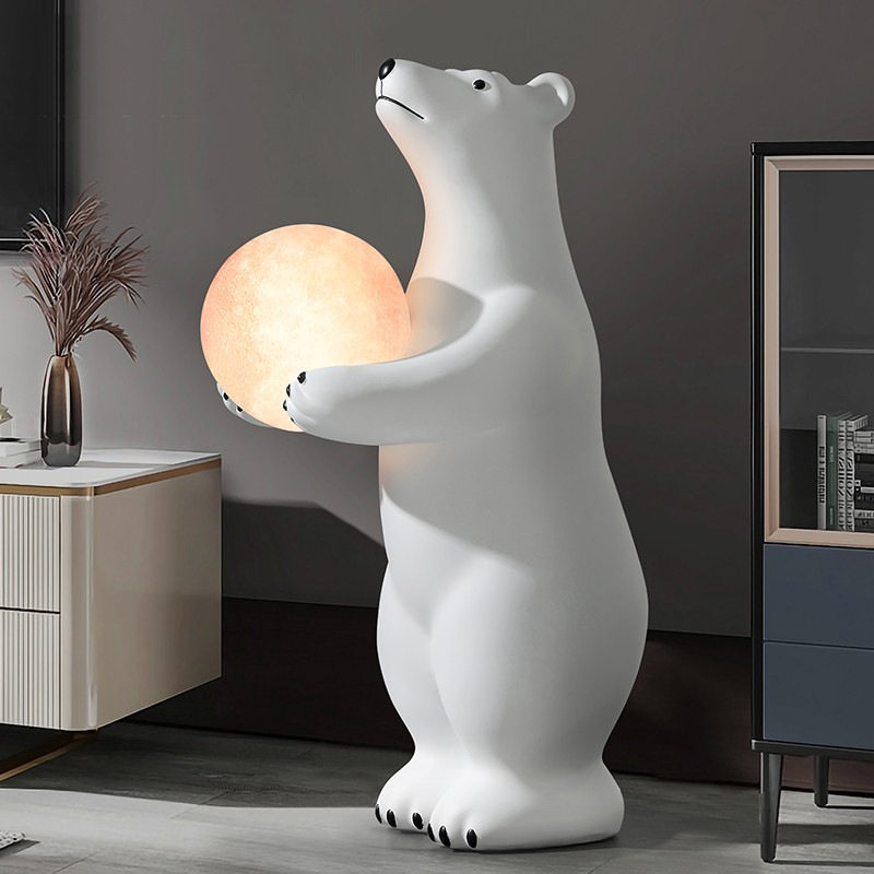 创意北极熊迎宾大型落地摆件装饰灯客厅玄关家居R饰品乔迁开业礼