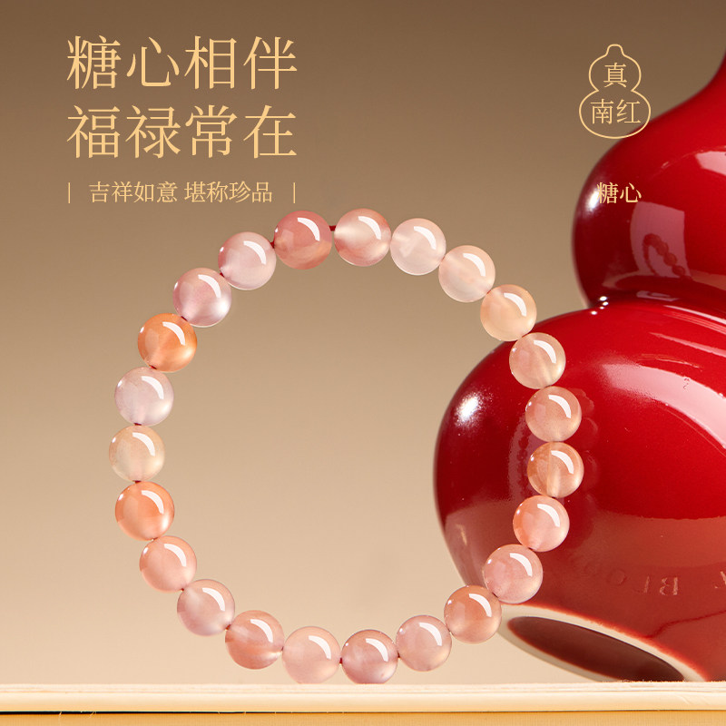 正品官方旗舰店天然冰飘南红手串女款糖心玛瑙原矿水晶玉石手串