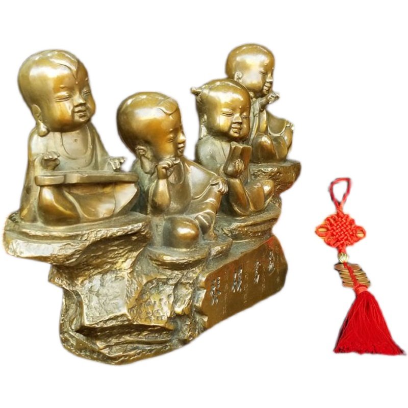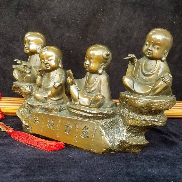 荣华富贵新款纯铜童子弹琴跳棋看书画复古书房桌面家居客厅装饰
