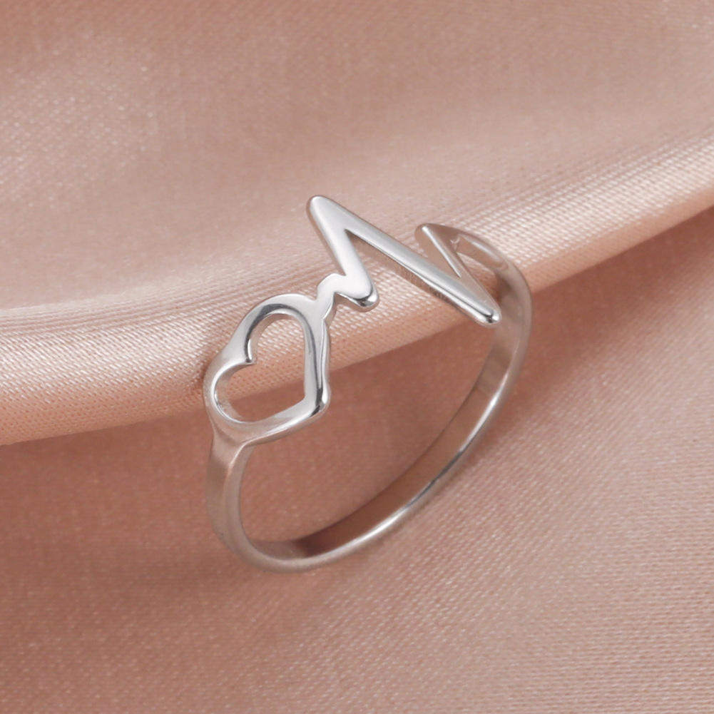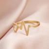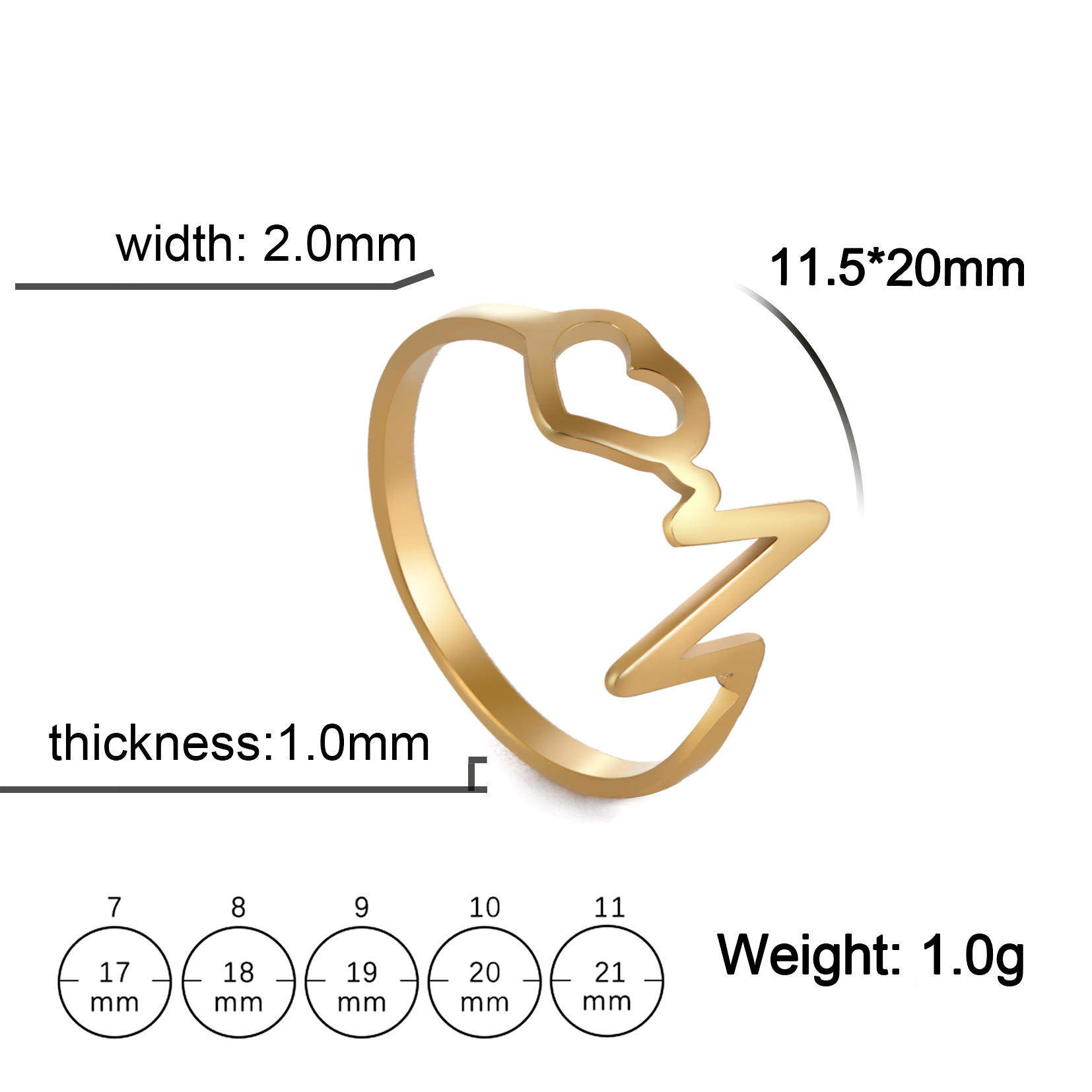 简约小众设计18K金不褪色切割不锈钢心电图男女戒指闺蜜情侣饰品