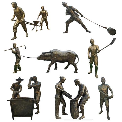 玻璃钢农耕人物雕塑定制仿铜雕像户外牛拉犁大型园林景观铸铜摆件