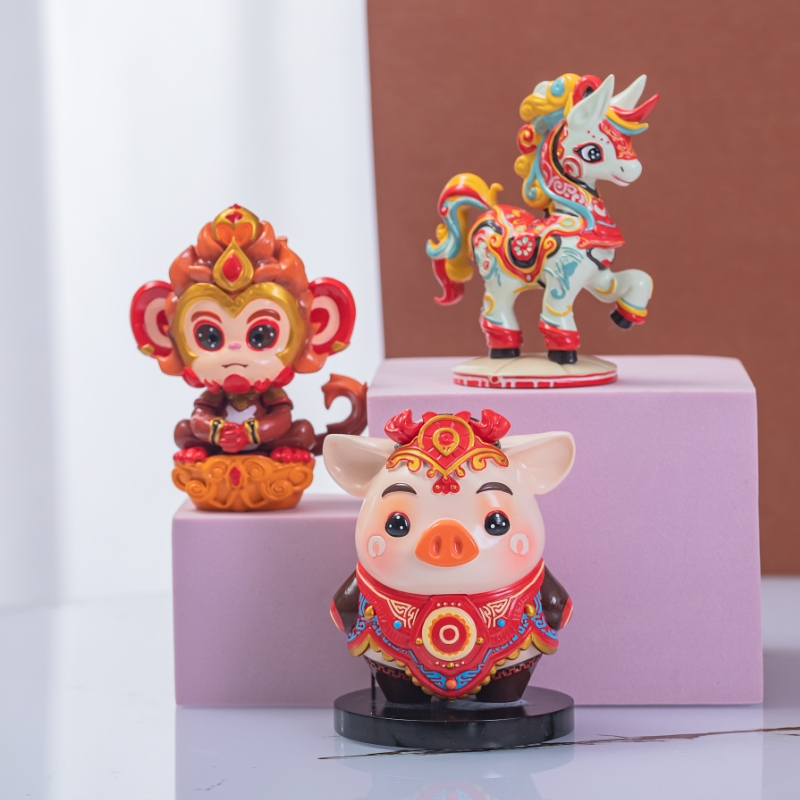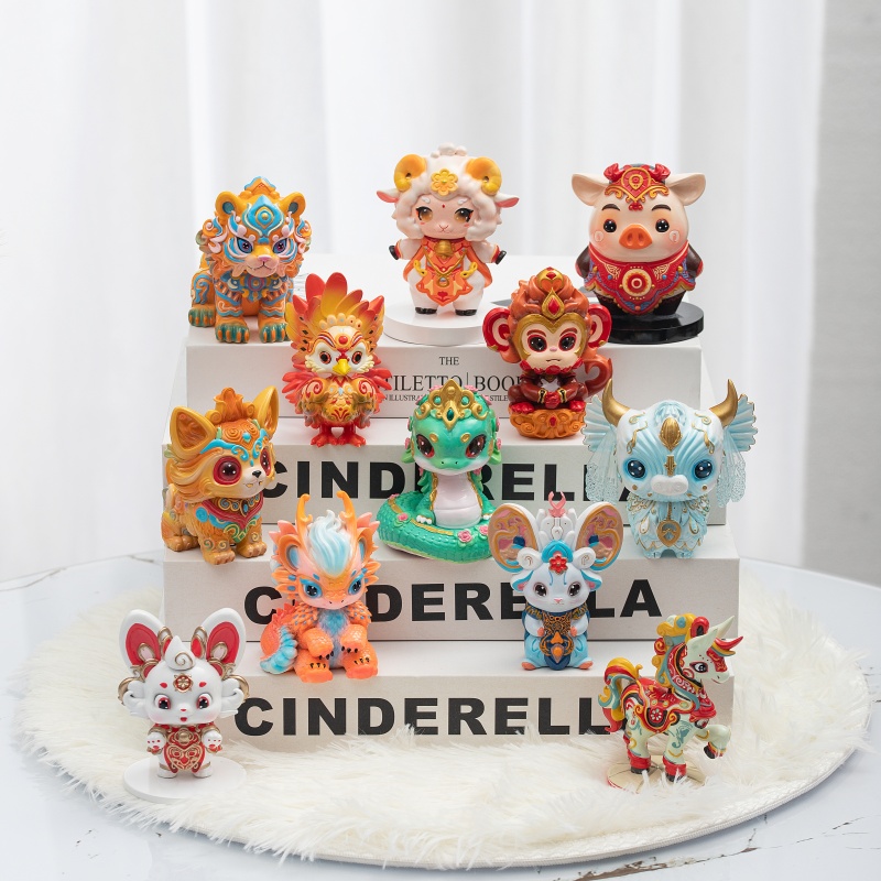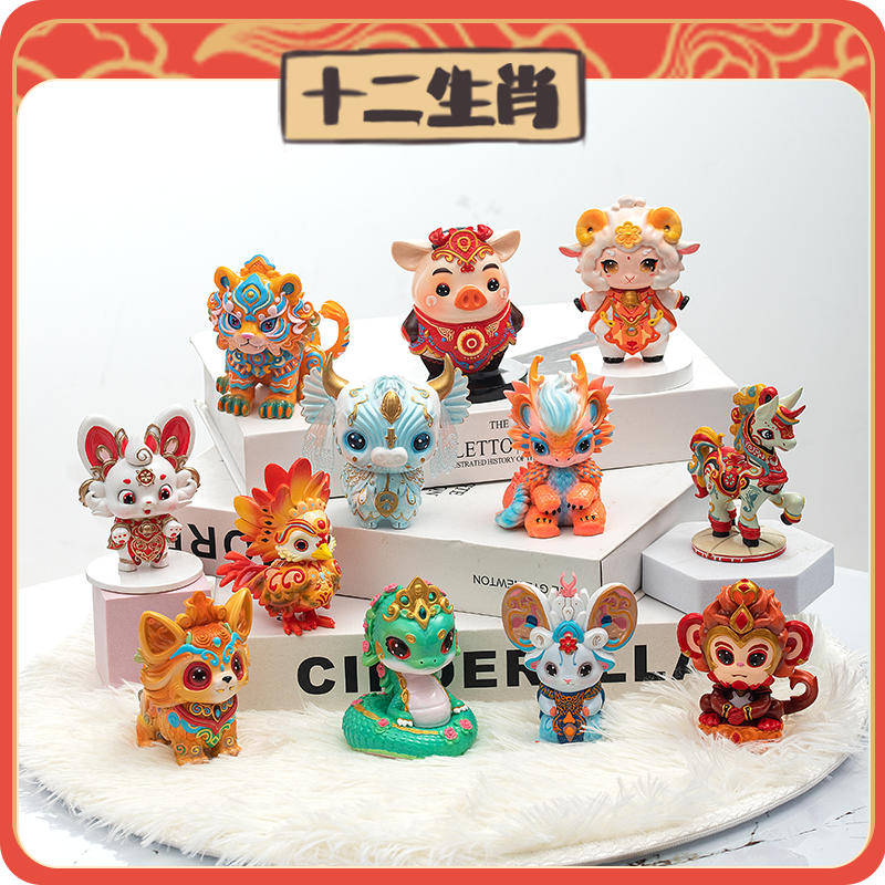 蛇年十二生肖三合六合国潮吉祥物装饰摆件全套手办套装送礼整盒端