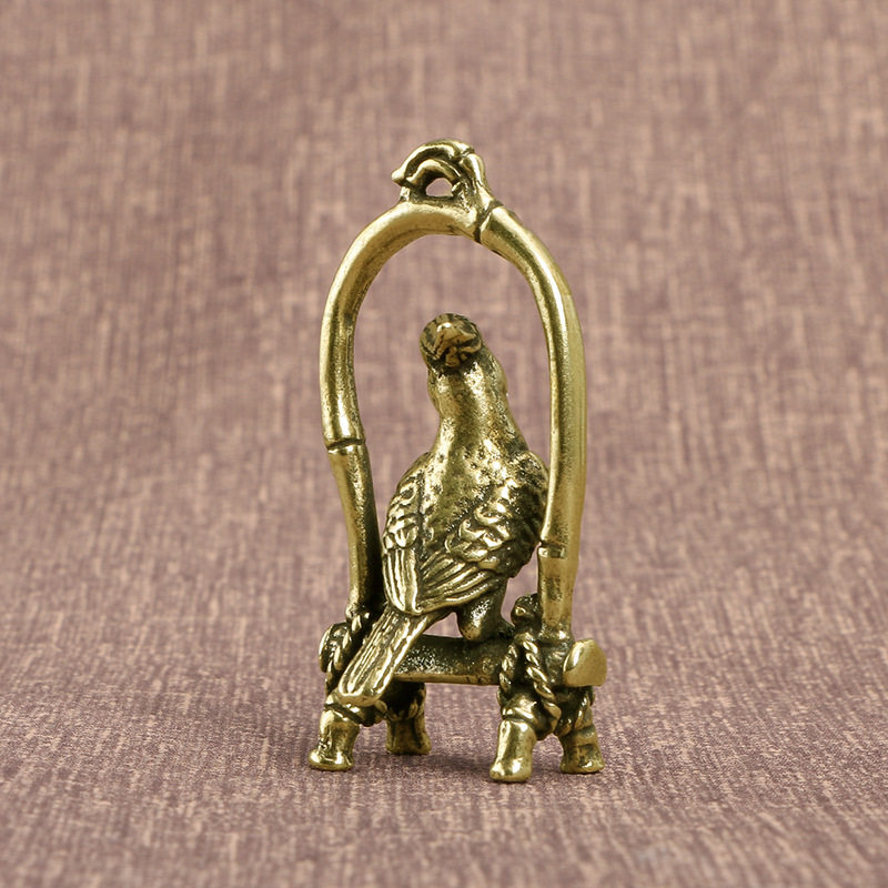 潮爱古铜器工艺品鸟笼鹦鹉挂件八哥把件实心铜雕茶宠动物古玩