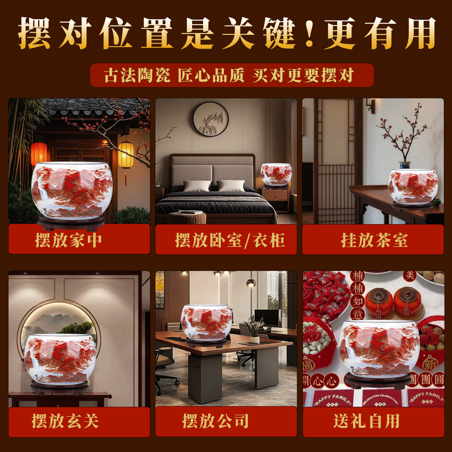 景德镇鸿运当头聚宝盆陶瓷招财聚财生财摆件客厅玄关轻奢高档送礼