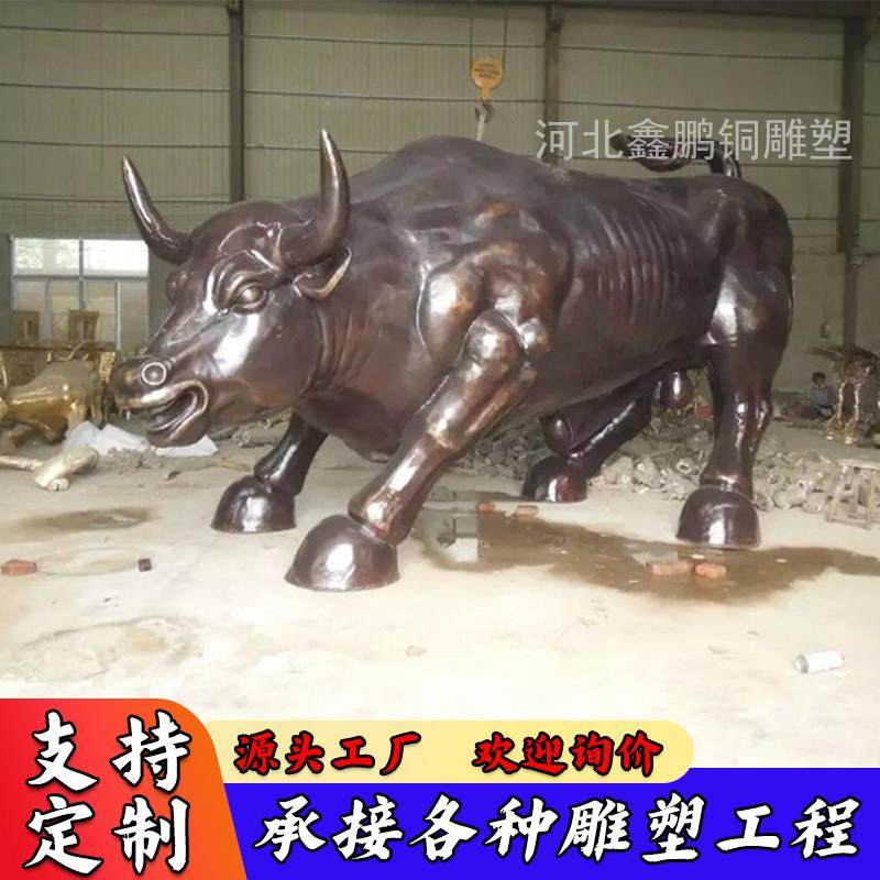 大型纯铜华尔街牛开荒牛耕地牛雕塑户外商业街落地铜牛摆件厂家