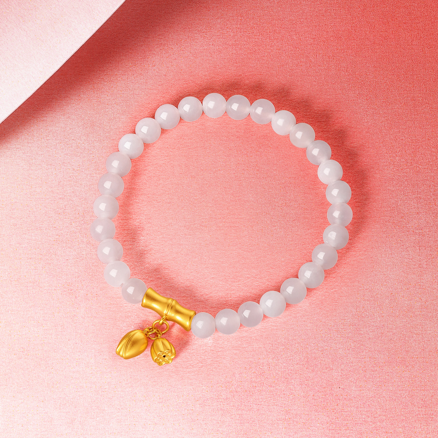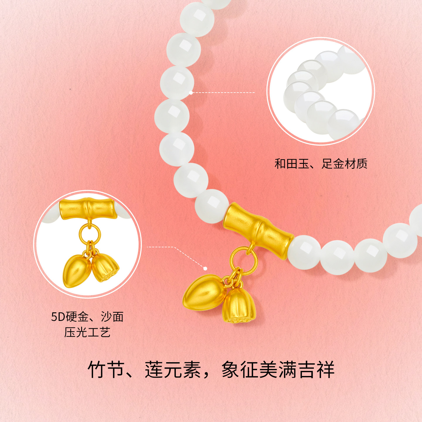 周六福和田玉手串女金镶玉黄金白玉步步高升莲蓬手链新年礼物