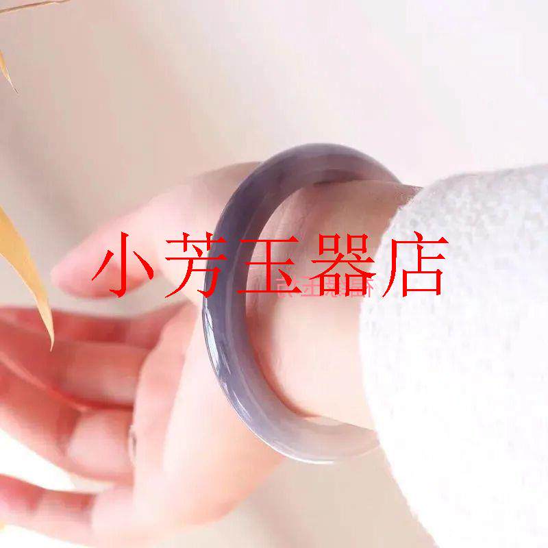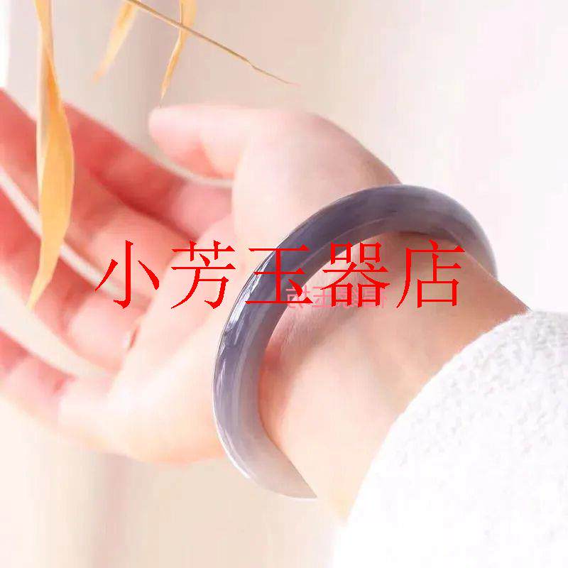正宗和田玉烟紫色手镯半山半水双色紫罗兰玉镯圆条女款复古细圆条