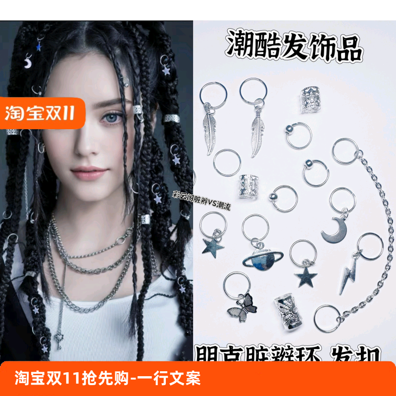朋克金属脏辫环滑板女孩头饰编发扣嘻哈风发饰潮酷小辫子配饰银色