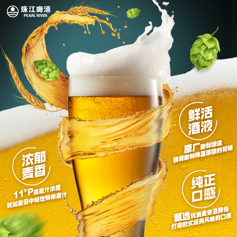 珠江原浆啤酒980mL*6罐+雪堡精酿白啤酒330mL*24罐官方旗舰店