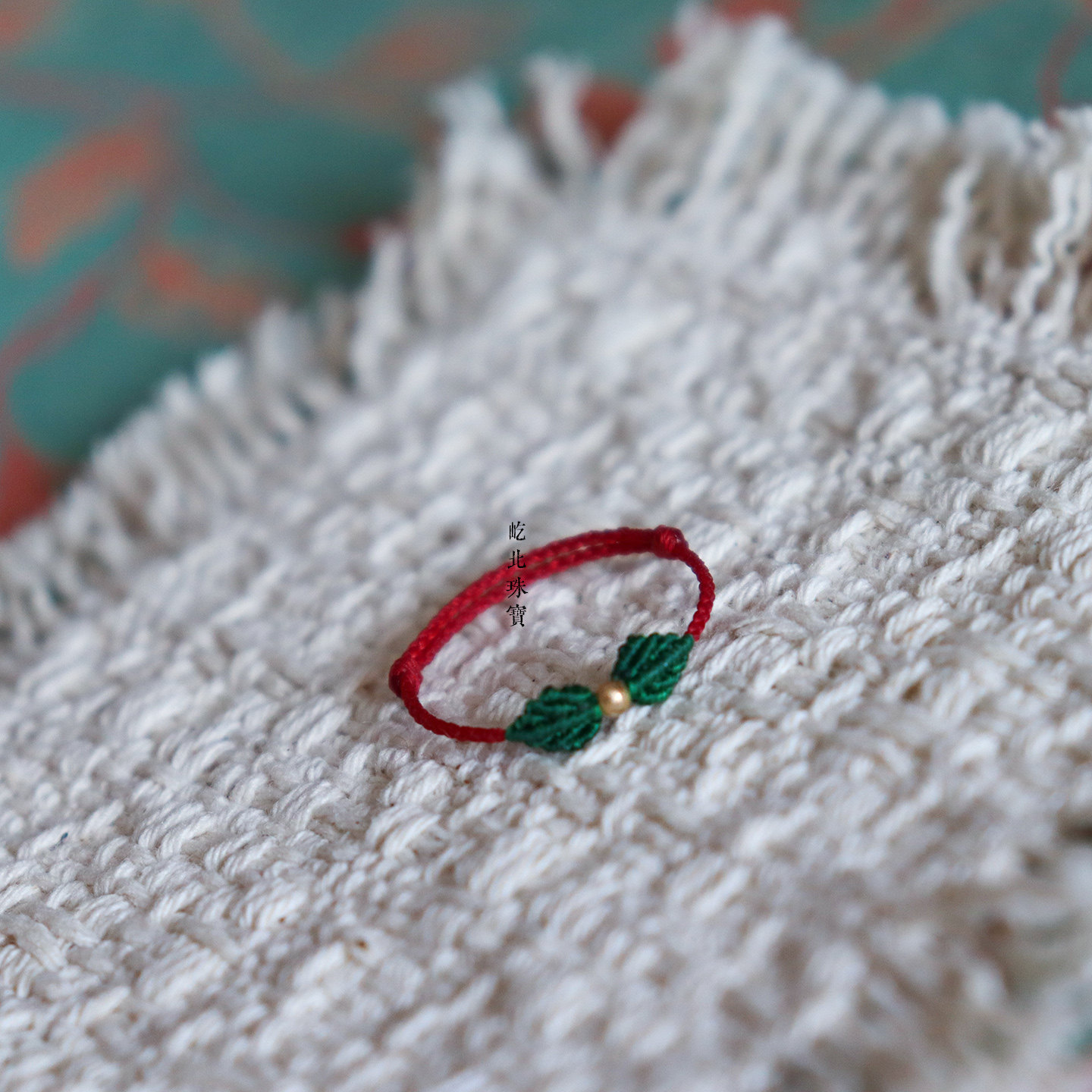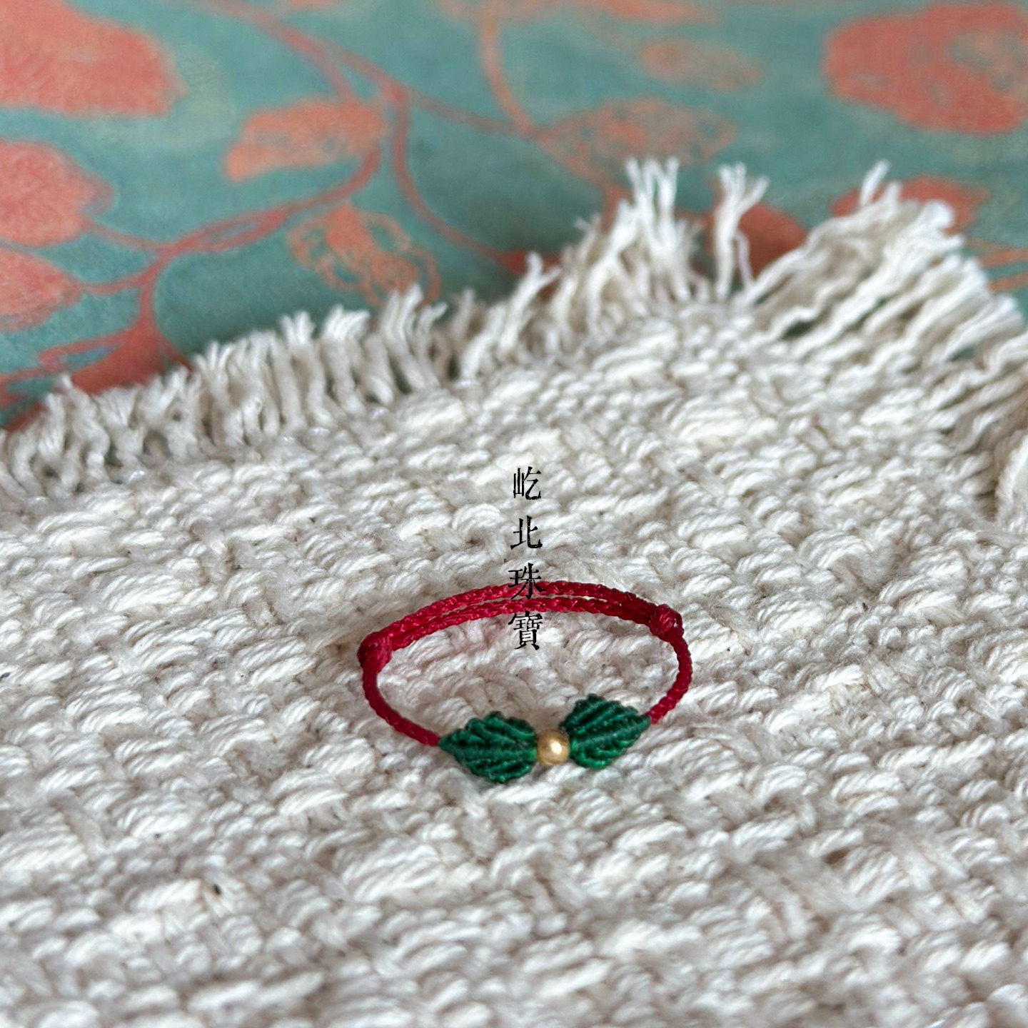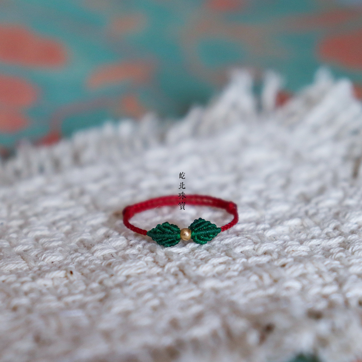 18k金本命年极细绿色小戒指au750极细迷你小叶子指环可调节