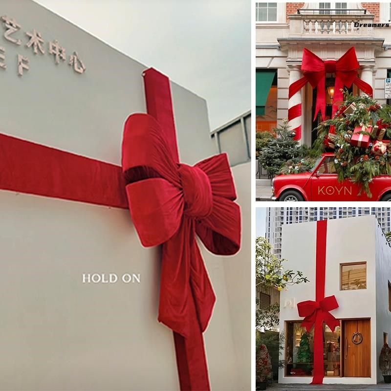 情人节丝绒布蝴蝶结巨型店铺橱窗户门头装饰节V日元旦新年布置